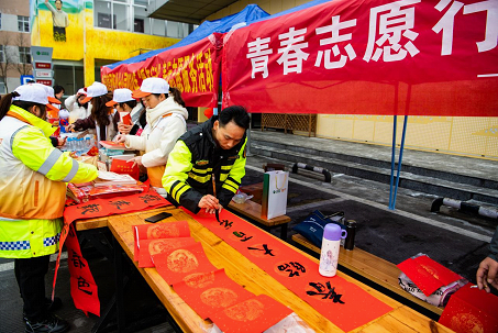 在G60沪昆高速安江服务区,怀化分公司本部“路灯”志愿者搭建的服务台吸引大量司乘,其中暖心暖胃的红糖姜茶备受司乘朋友青睐,员工自行设计绘制的安全出行手卡,用漫画的形式给司乘送上祝福,传递春运出行安全知识;擅长写毛笔书法的志愿者铺开笔墨红纸,为司乘现场书写春联和福字,一笔一划强劲有力,挥写着对司乘的祝福,活动现场年味浓浓。从广东回四川老家过年的王女士一边欣赏着为她“私人定制”的春联,一边喝着香甜的红糖姜茶,不经赞叹道:“写得真不错,谢谢了!”