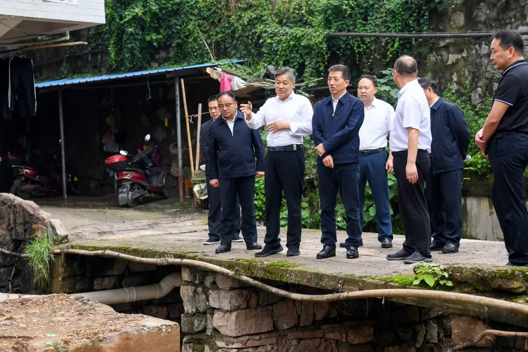 (5月12日上午,市委书记许忠建在城区调研督导生态环境问题。图为许忠建来到茅谷冲溪片区察看了解雨污分流改造工程进展情况。怀化日报全媒体记者 杨智伟 摄)