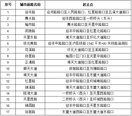 根据怀化城区机动车违法停车管理工作及城区部分道路更名的实际情况,为规范城区道路违法停车整治工作,现将平安路、云集路等2条机动车违法停车行为严格管理路段调整为非严格管理路段,迎丰路、顺天大道部分路段做优化调整,环城东路、高堰路、舞阳大道予以更名。城区调整后的严格管理路段如下: