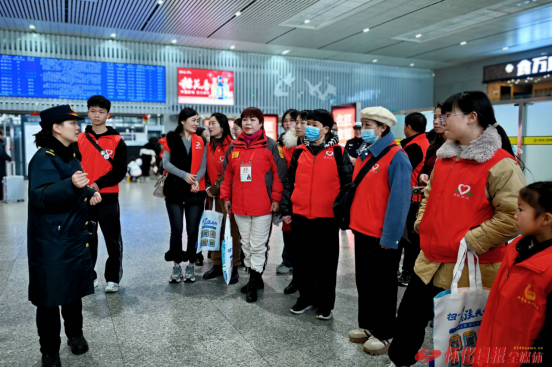 展现怀化青年的风采。怀化高铁南站站长刁红霞以及怀化高铁南站党总支书记吴锦东向志愿者们表示感谢,希望志愿者们用“志愿红”点燃春运,持续温暖旅客回家路。