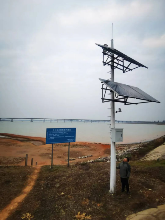 (湖南省水上交通安全指挥监控中心工作人员在沅水白沙航道检查视频监控设备。)