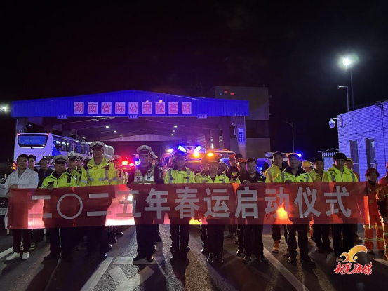 1月13日晚,新晃县交通运输局、怀化支队芷江大队、新晃高速管理所、新晃县人民医院等部门联合在湖南省际公安检查站举行2025年高速公路春运工作启动仪式。