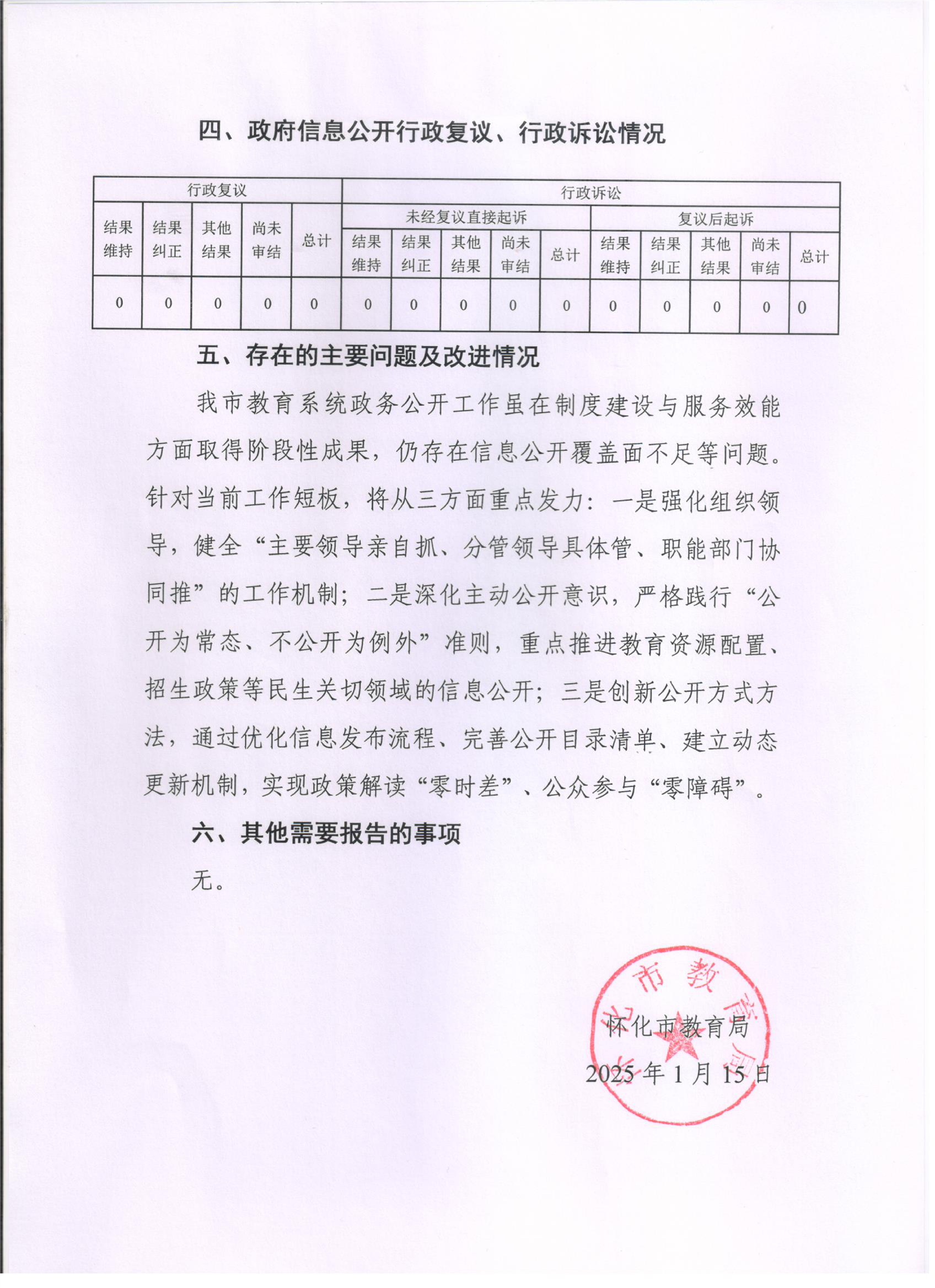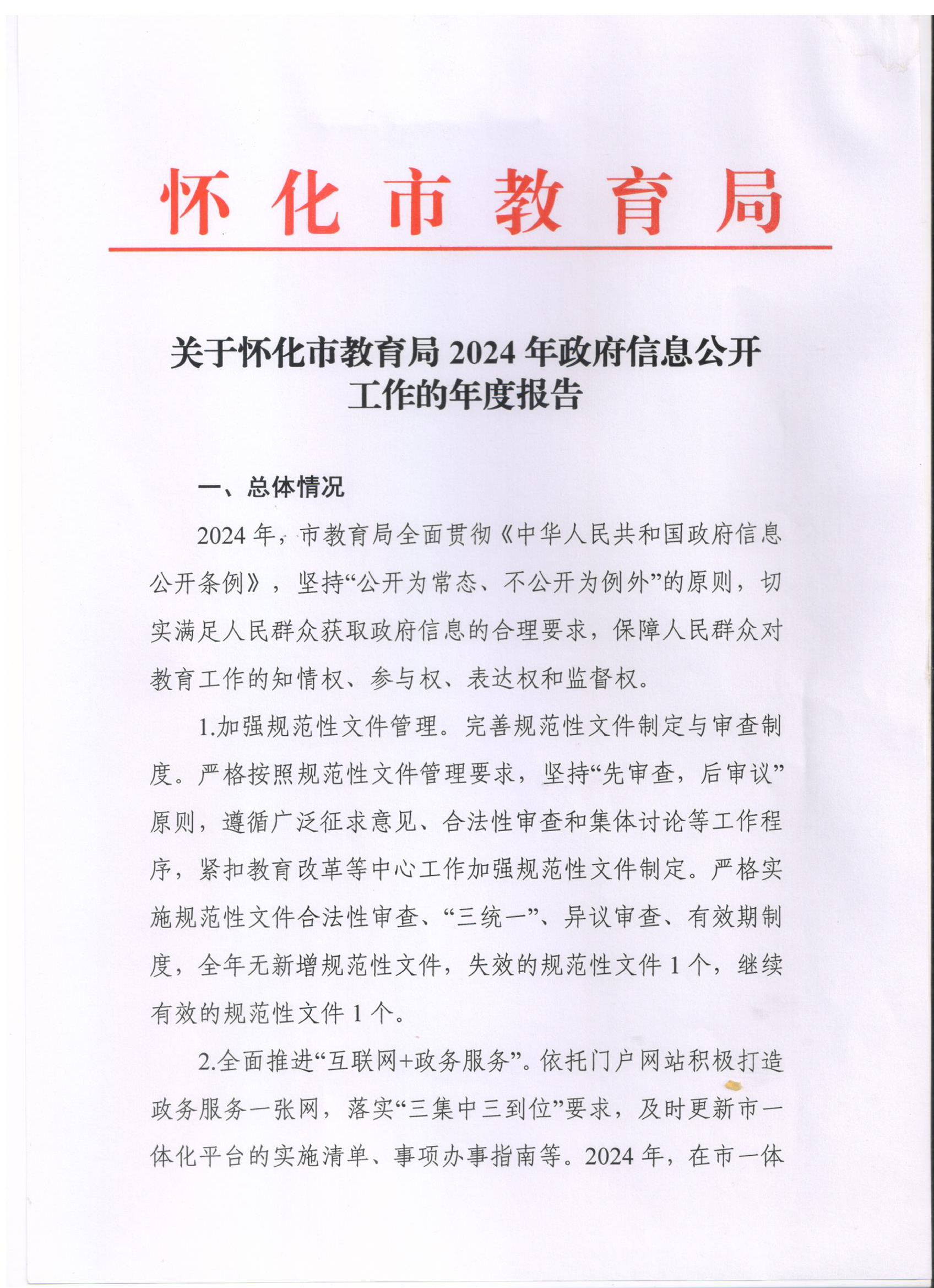 2024年怀化市教育局政府信息公开工作年度报告