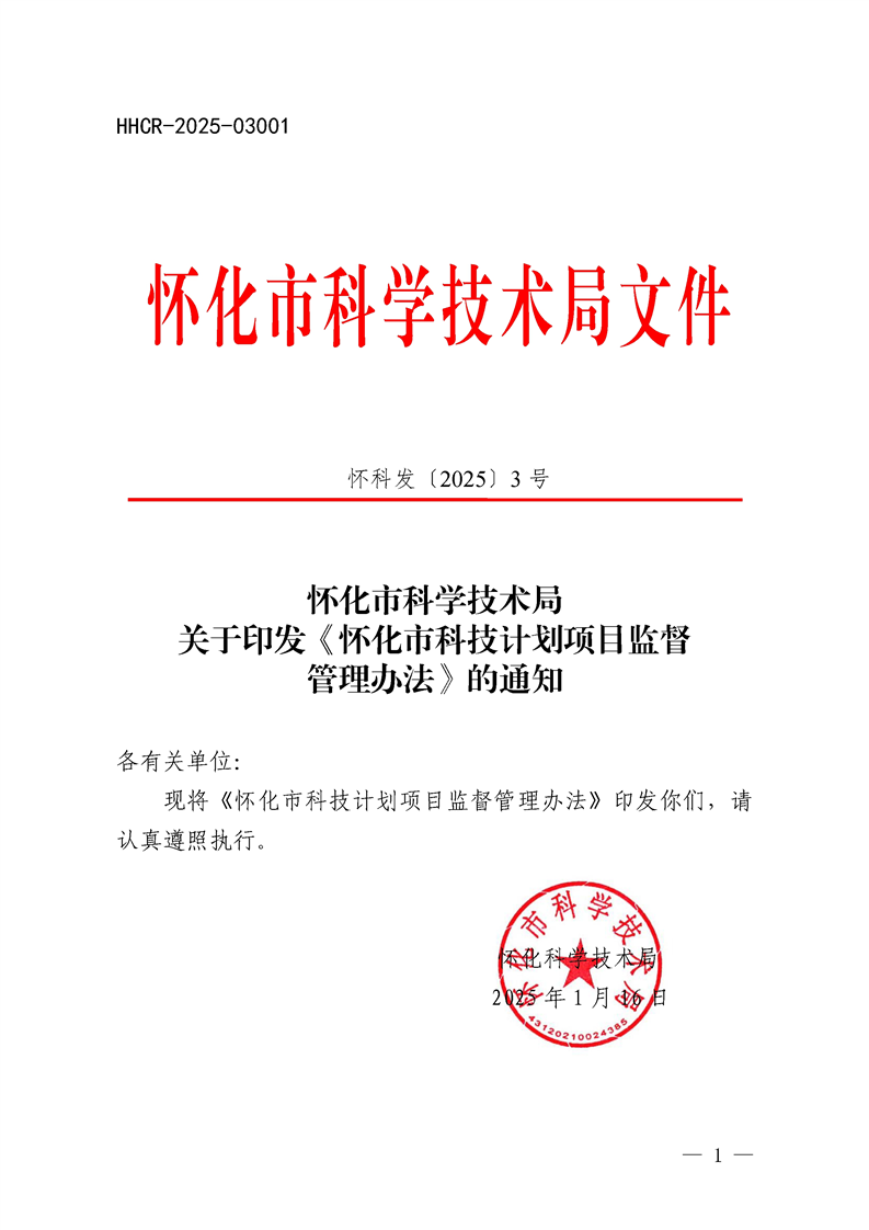 怀化市科学技术局关于印发《怀化市科技计划项目监督管理办法》的通知