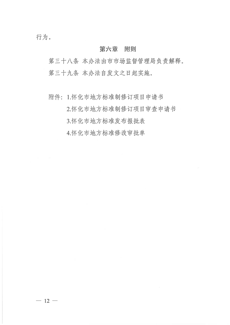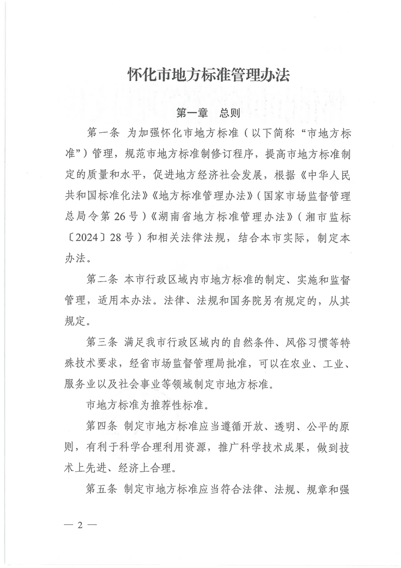 《怀化市地方标准管理办法(送审稿)》的起草说明
