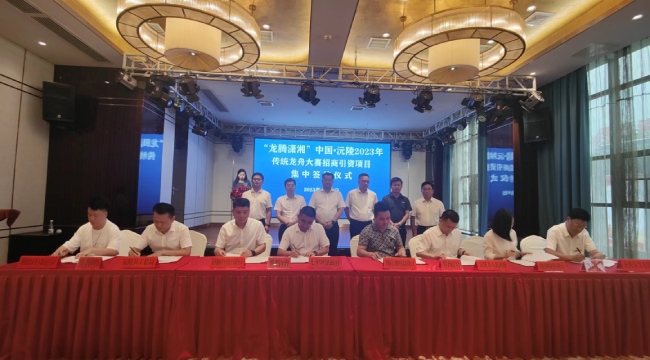 6月28 日,“龙腾潇湘”2023年中国·沅陵传统龙舟大赛经贸座谈会暨招商引资项目集中签约仪式上,沅陵县成功签约17个招商引资项目,总资金达117.2亿元。