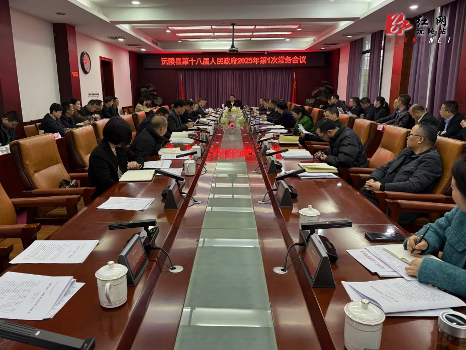 1月23日,县委副书记、县长易中华主持召开沅陵县第十八届人民政府2025年第1次常务会议。全体在家的副县长、县政府办主任出席,县委、县人大、县政协、县人武部有关领导应邀参加,县政府办班子成员以及县直有关单位主要负责人列席会议。