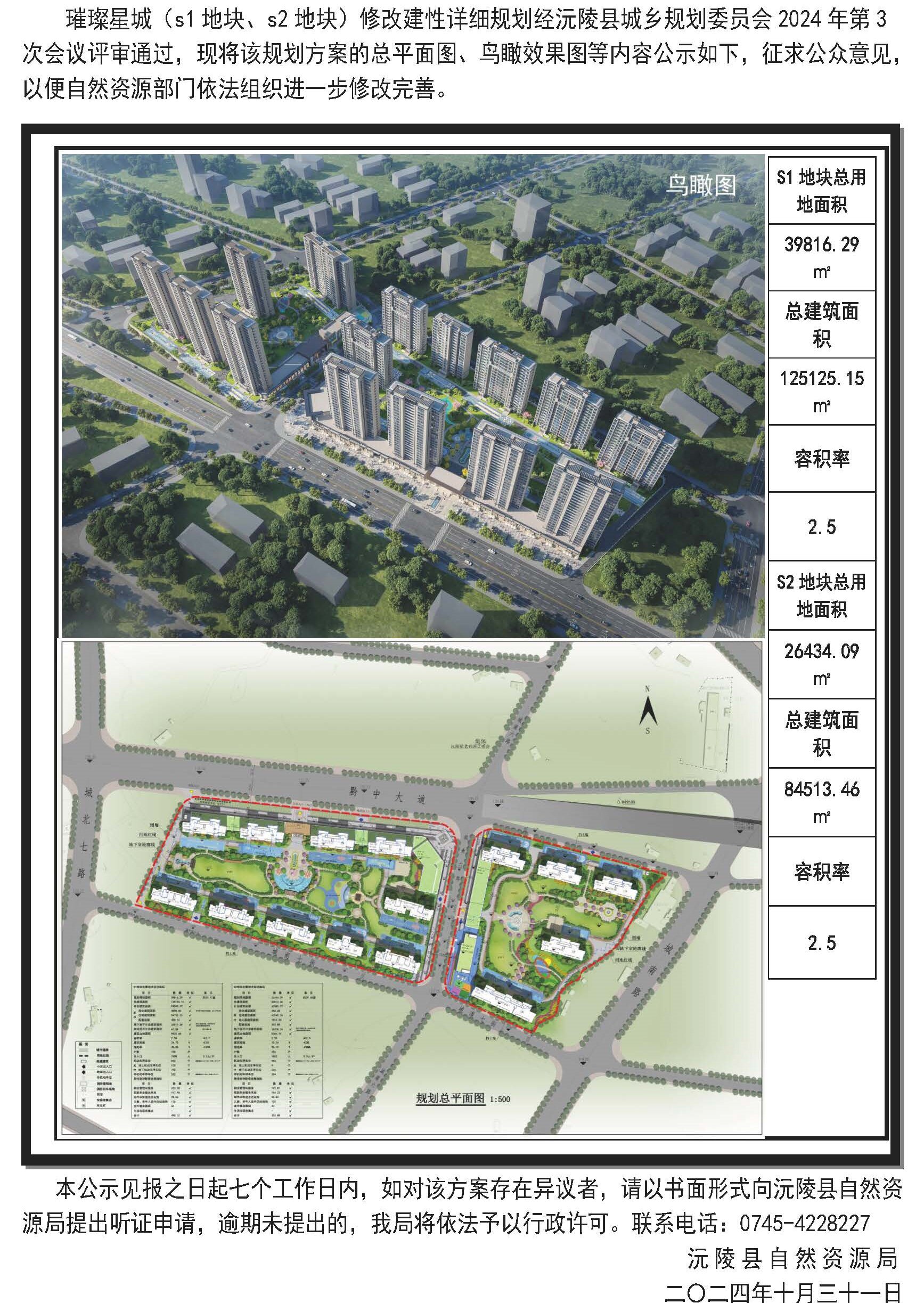 璀璨星城(s1地块、s2地块)修改建性详细规划批前公示