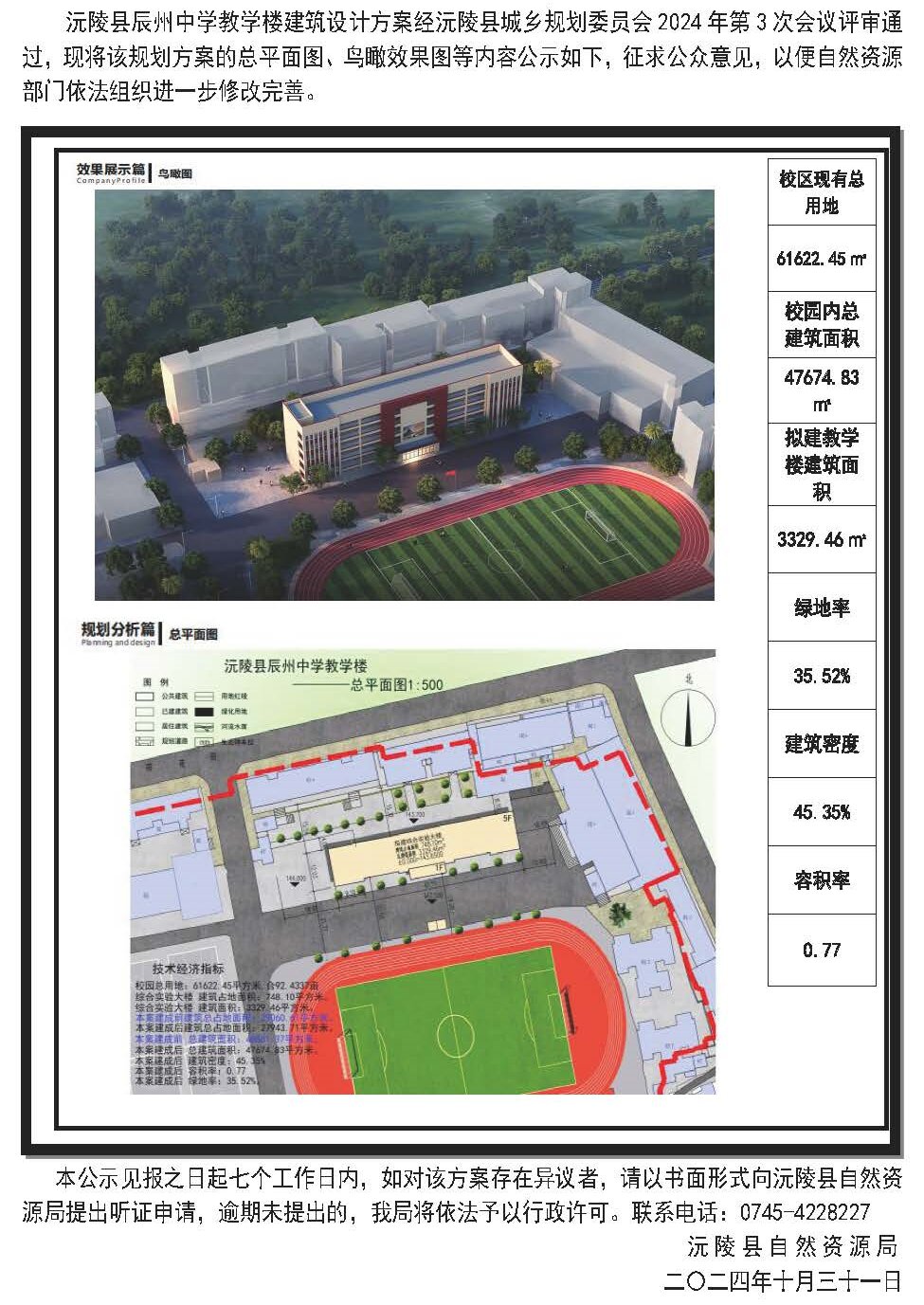 沅陵县辰州中学教学楼建筑设计方案规划批前公示