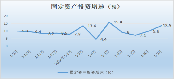 (二)投资需求有所回升。全县抢抓项目建设“黄金期”有效投资不断扩大,重点产业和重点领域投资稳中向好。前三季度全县固定资产投资同比增长13.5%,比上半年快4.5个百分点。从投资方向看,工业投资同比增长10.1%,工业技改投资同比增长32.7%,基础设施投资同比增长9.4%。房地产开发投资下降15.1%,较上半年收窄7个百分点。建筑业总产值同比增长20.4%。