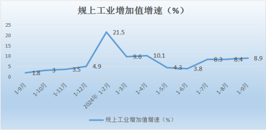 (一)产业发展保持平稳。一是农业保持增长。加大农业田间管理,最大限度降低雨雪冰冻、干旱汛情等极端天气影响,全力稳住农业生产“基本盘”。前三季度全县农林牧渔业总产值同比增长3.1%,其中农、林、牧、渔业及辅助性活动产值分别增长5.1%、5.27%、1.6%、3.9%、8.5%。农林牧渔业增加值同比增长2.7%。二是工业增势平稳。全县规模以上工业增加值同比增长8.9%,比上半年快5.1个百分点。酒、饮料和精制茶制造业总产值同比增长54.82%,专业设备制造业总产值同比增长39.09%,计算机、通信和其他电子设备制造业总产值同比增长32.09%。三是商贸服务稳步增长。随着系统扩大内需促消费政策持续发力,消费潜能得到激发,前三季度全县社会消费品零售总额同比增长5.3%。从限上部分看,批零业零售额分别增长-2.29%、5.8%;住餐业营业额分别增长 -0.39%、25.1%。1-8月规模以上服务业企业营业收入同比增长15.8%,其中重点服务业营业收入同比增长22.9%。