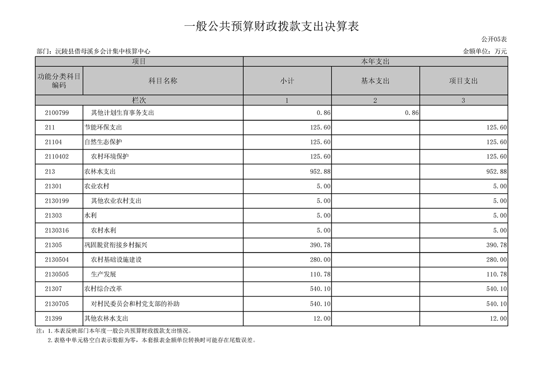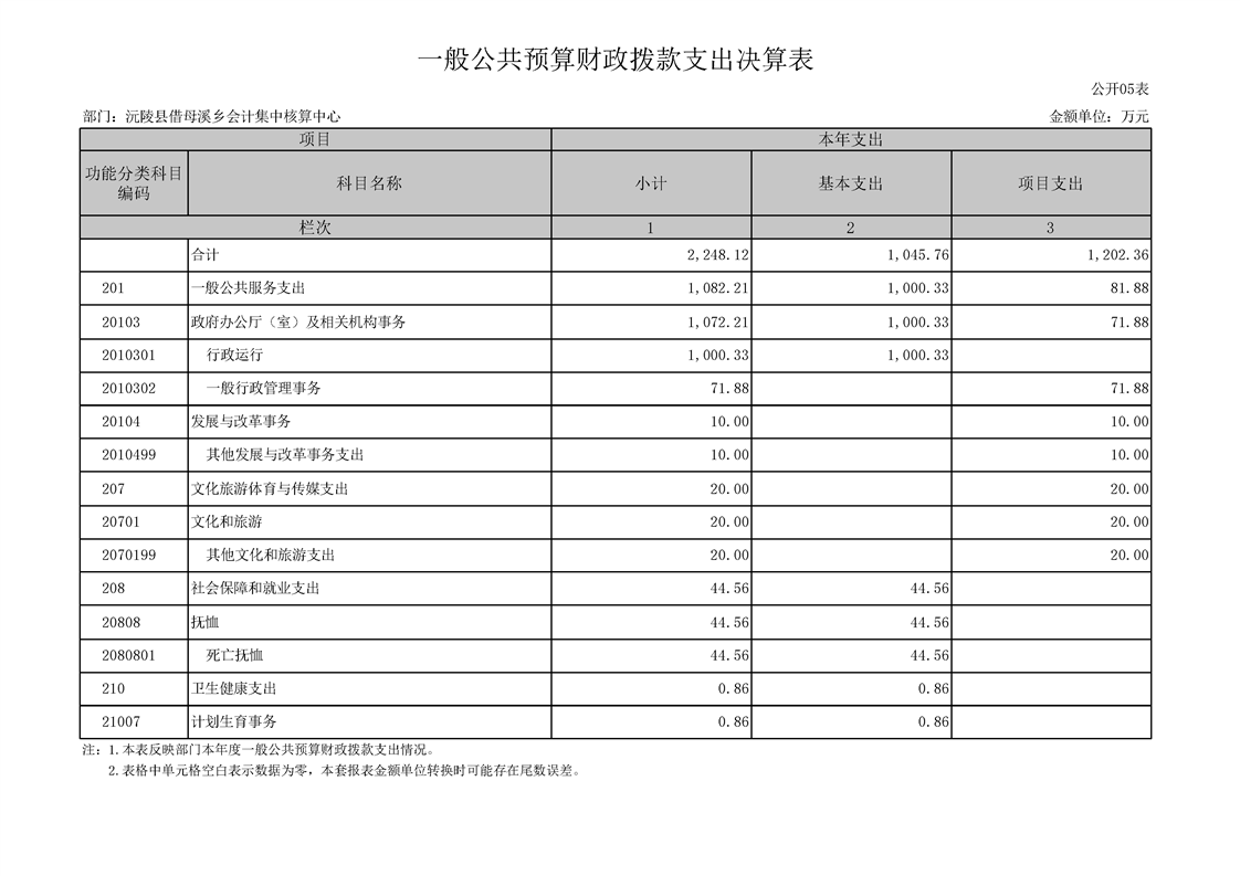 2022年度沅陵县借母溪乡会计集中核算中心部门决算