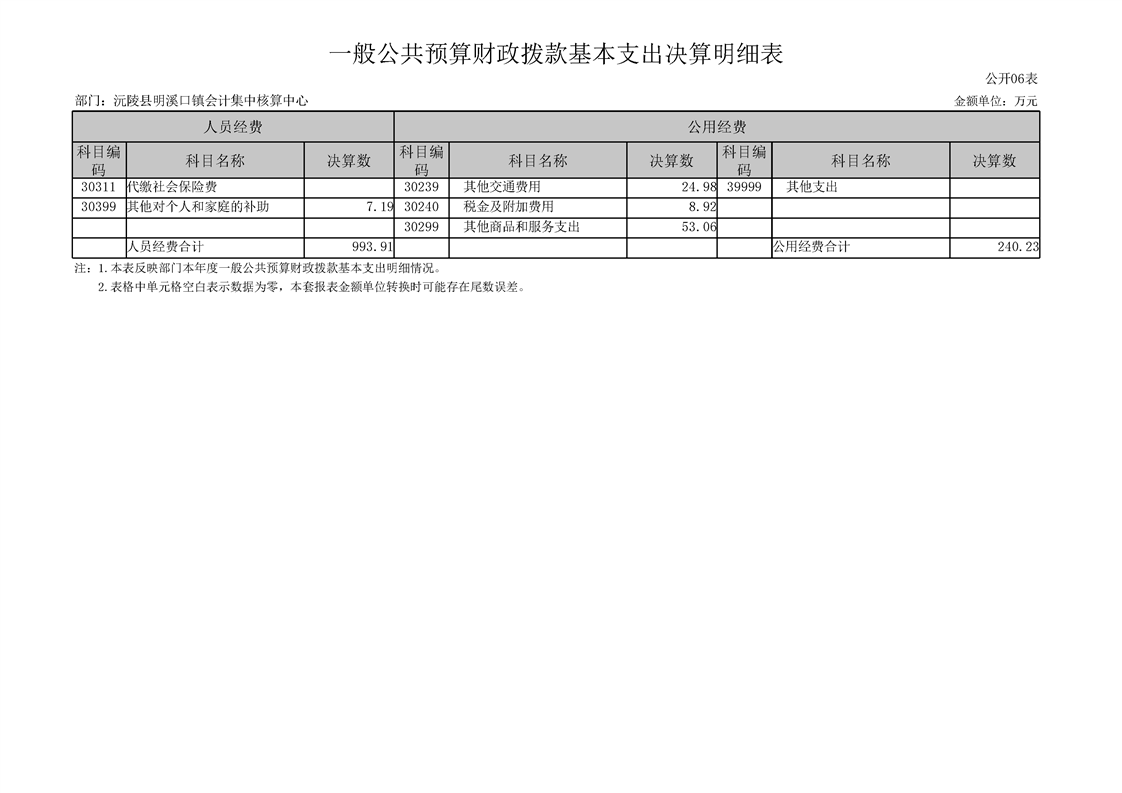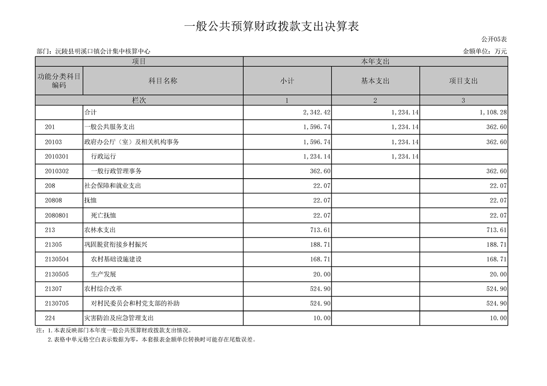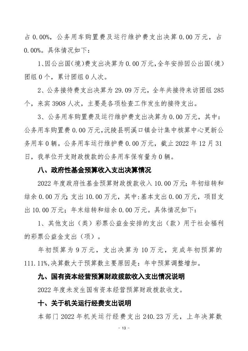2022年度沅陵县明溪口镇会计集中核算中心部门决算