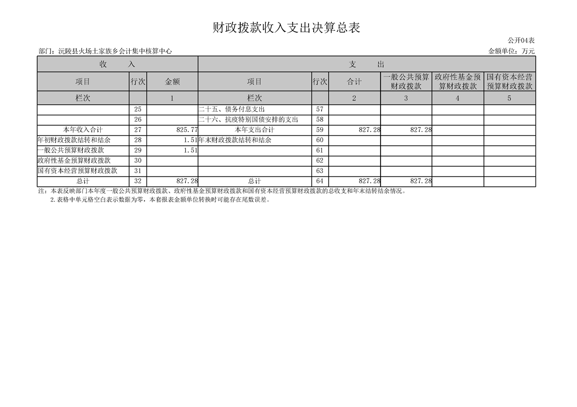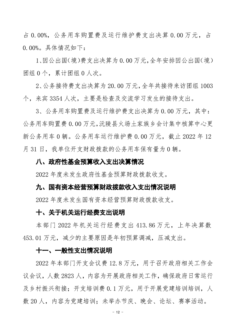 2022年度沅陵县火场土家族乡会计集中核算中心部门决算