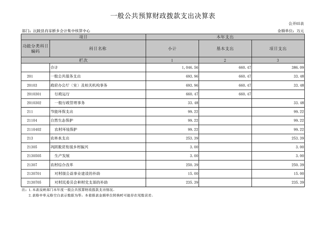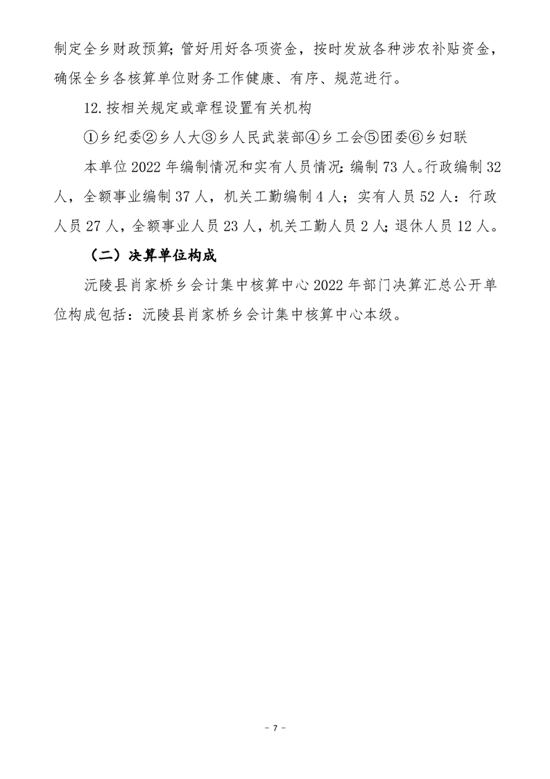 2022年度沅陵县肖家桥乡会计集中核算中心部门决算