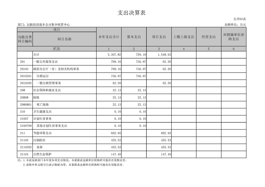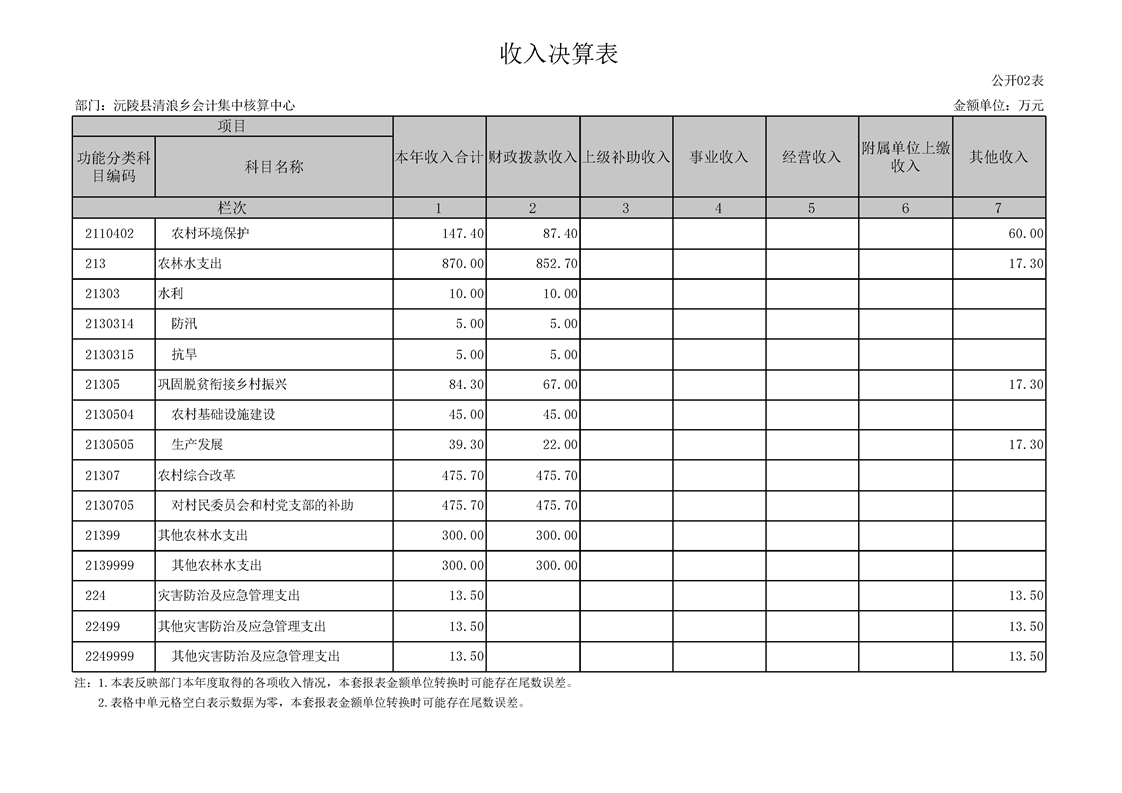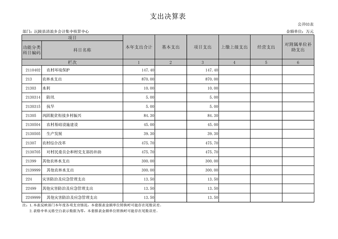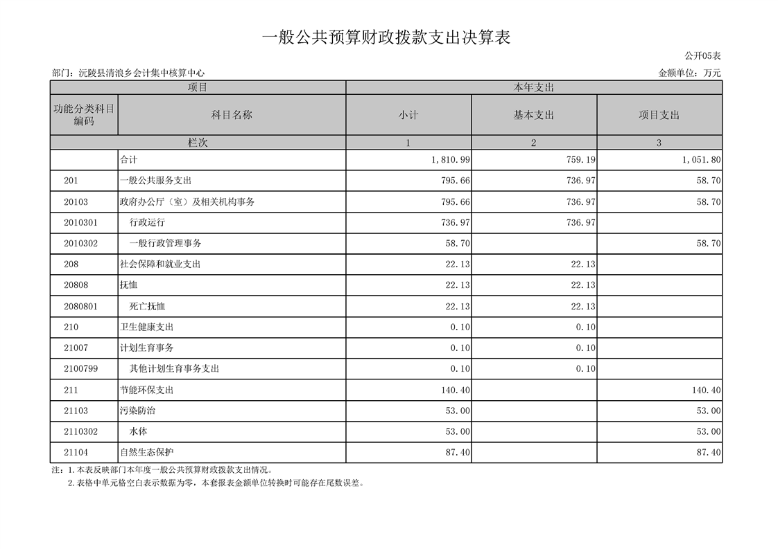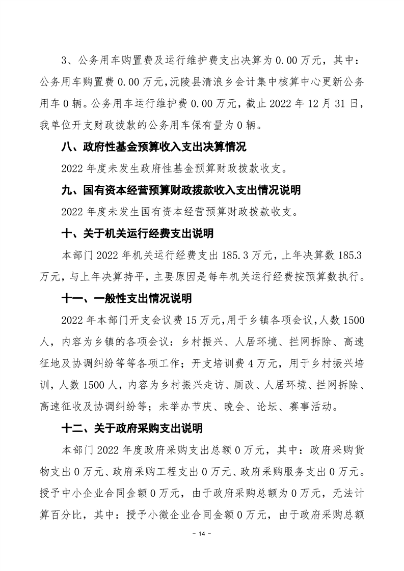 2022年度沅陵县清浪乡会计集中核算中心部门决算