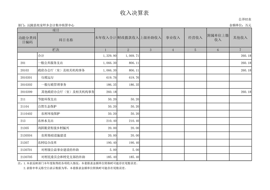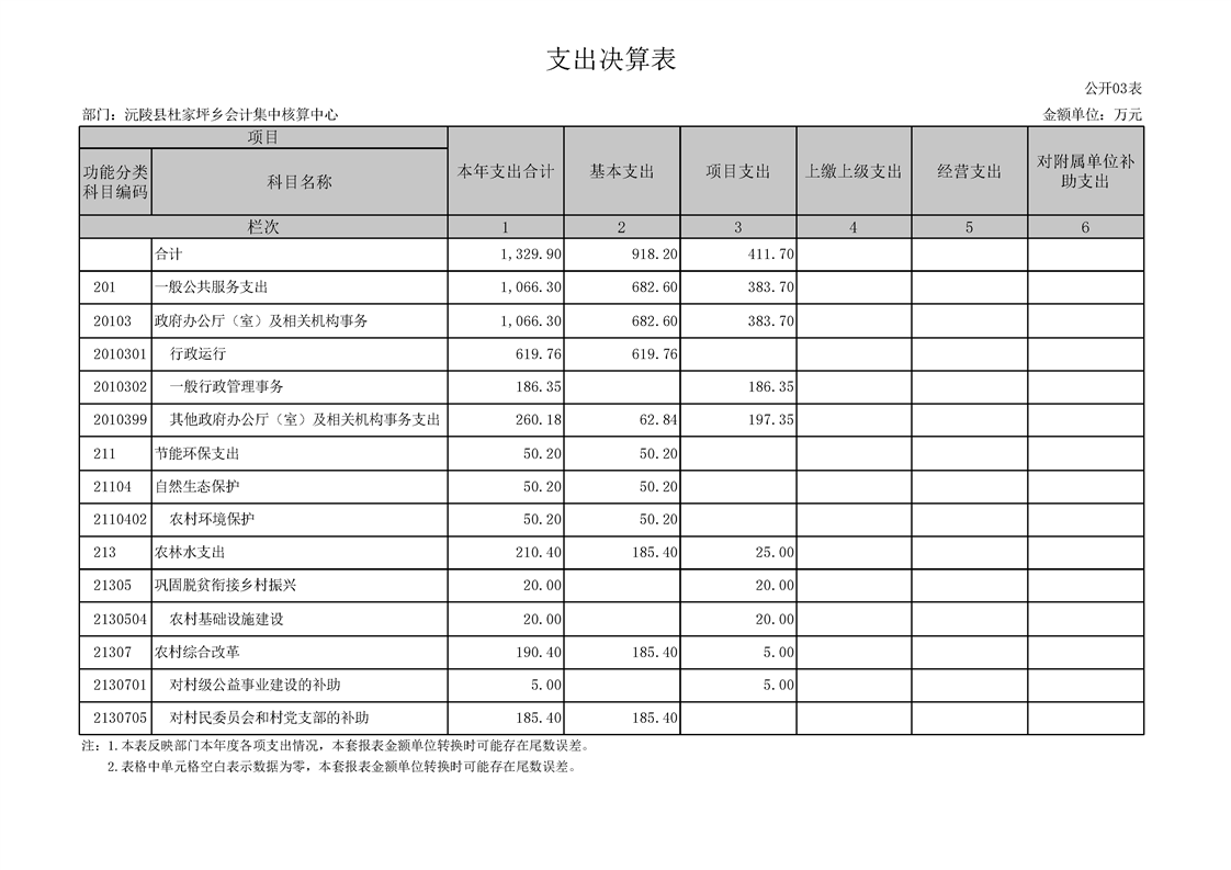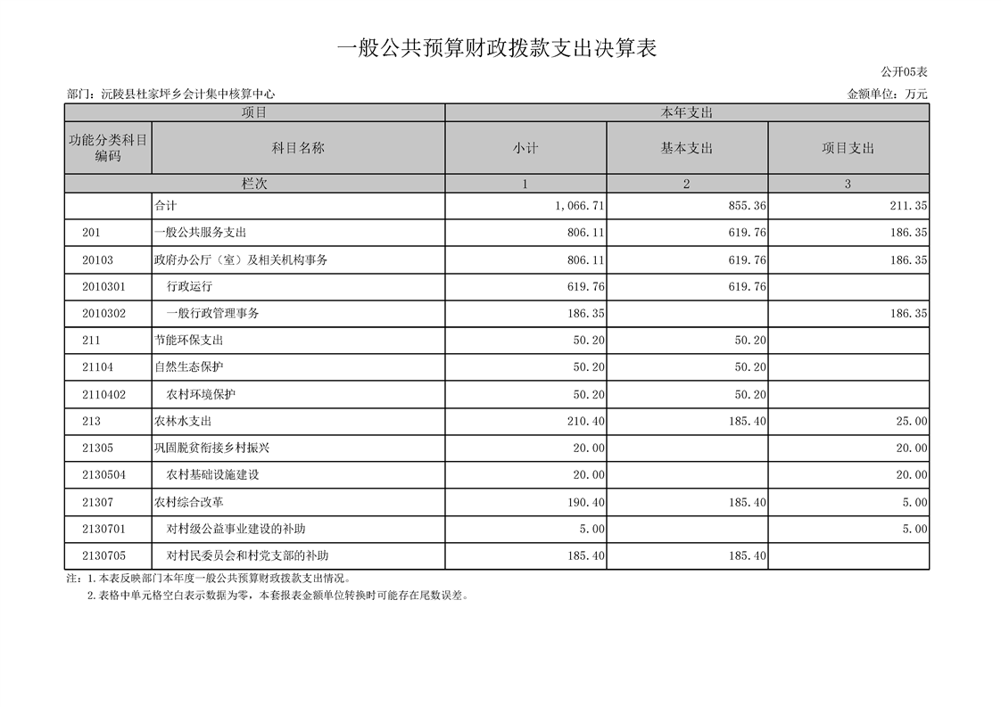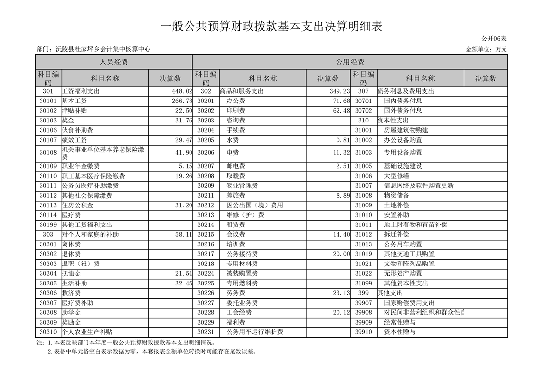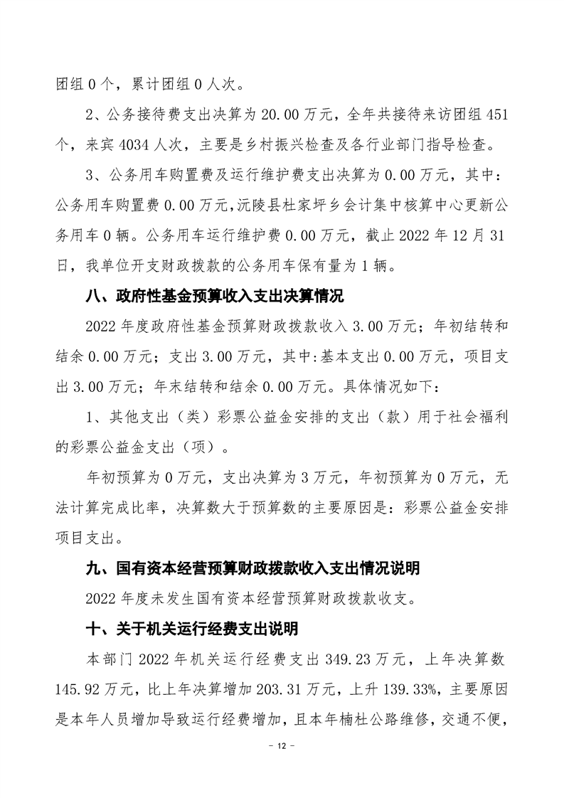 2022年度沅陵县杜家坪乡会计集中核算中心部门决算