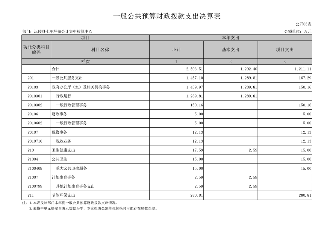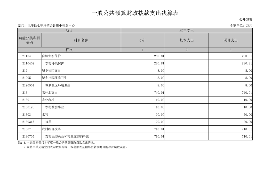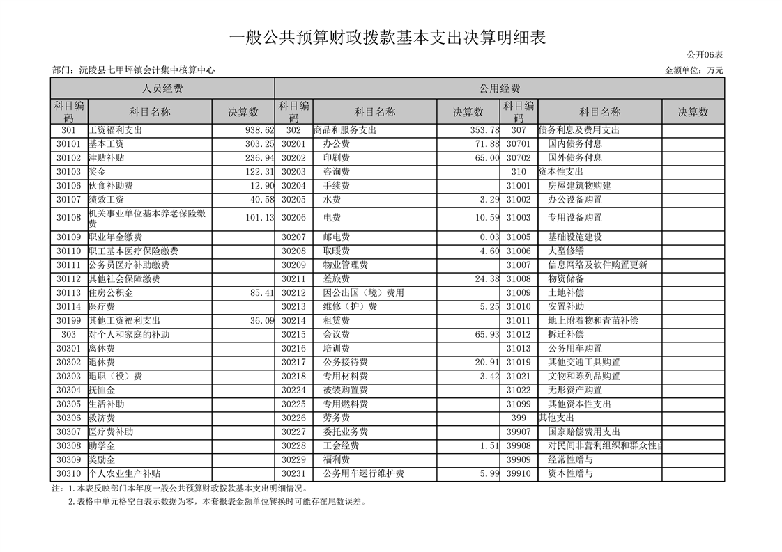 2022年度沅陵县七甲坪镇会计集中核算中心部门决算