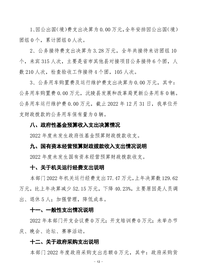 2022年度沅陵县发展和改革局部门决算