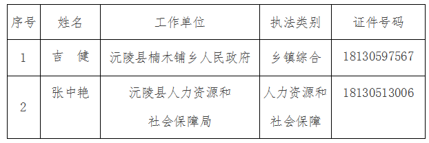 吉健等2名同志不再从事行政执法工作,根据《湖南省行政执法人员和行政执法辅助人员管理办法》第十条第三款之规定,对其《中华人民共和国行政执法证》公告注销。