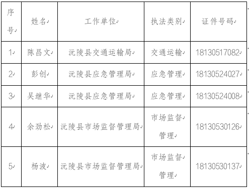 陈昌文等5名同志所持《中华人民共和国行政执法证》遗失,根据《湖南省行政执法人员和行政执法辅助人员管理办法》第十条第二款之规定,对其《中华人民共和国行政执法证》公告作废。
