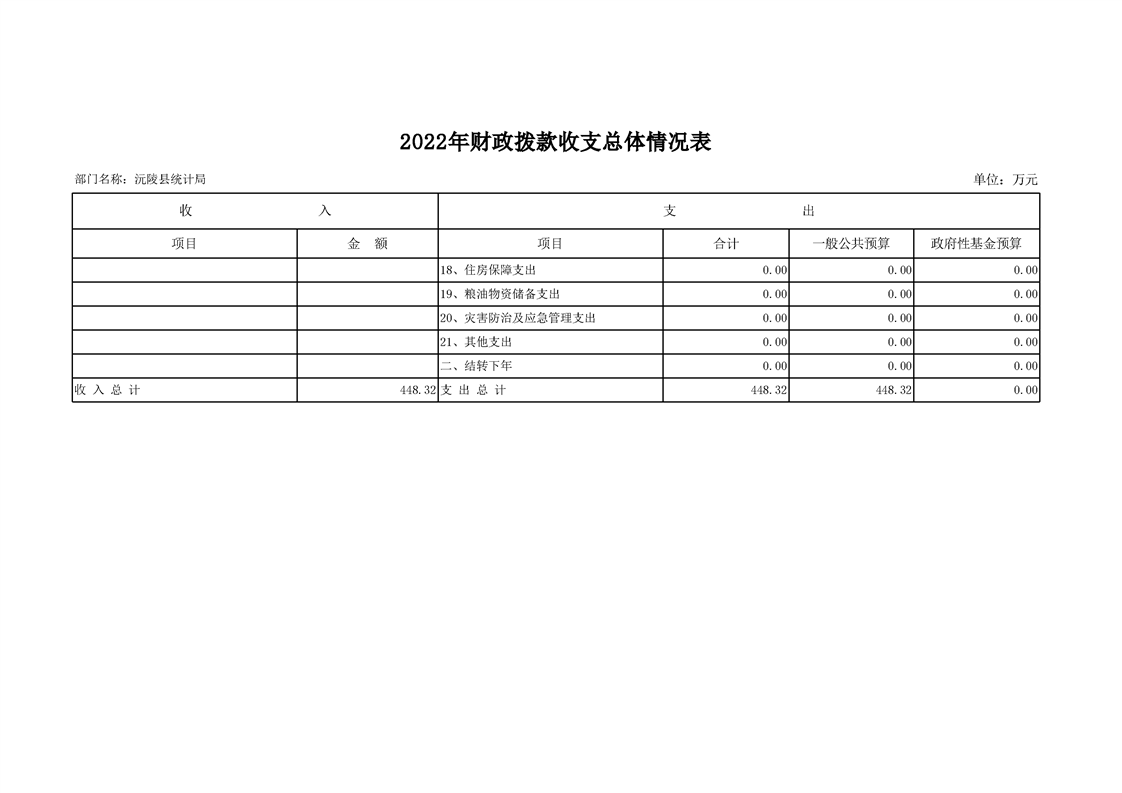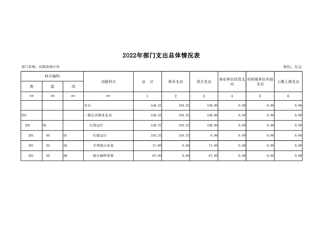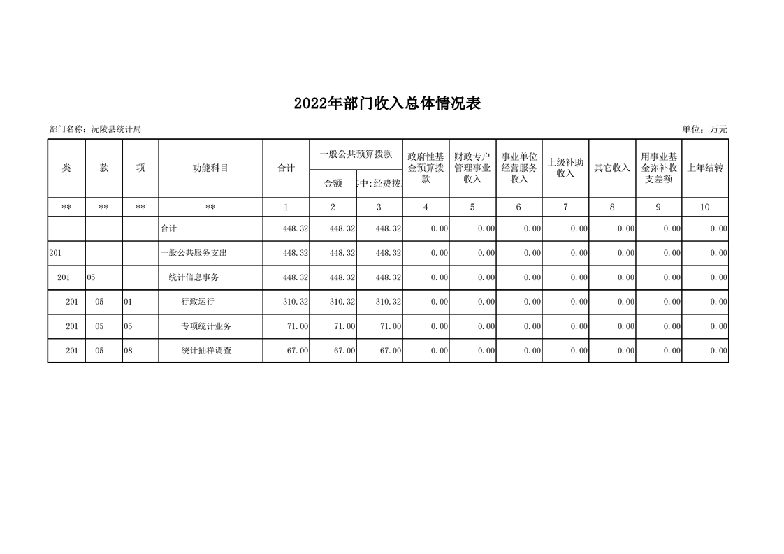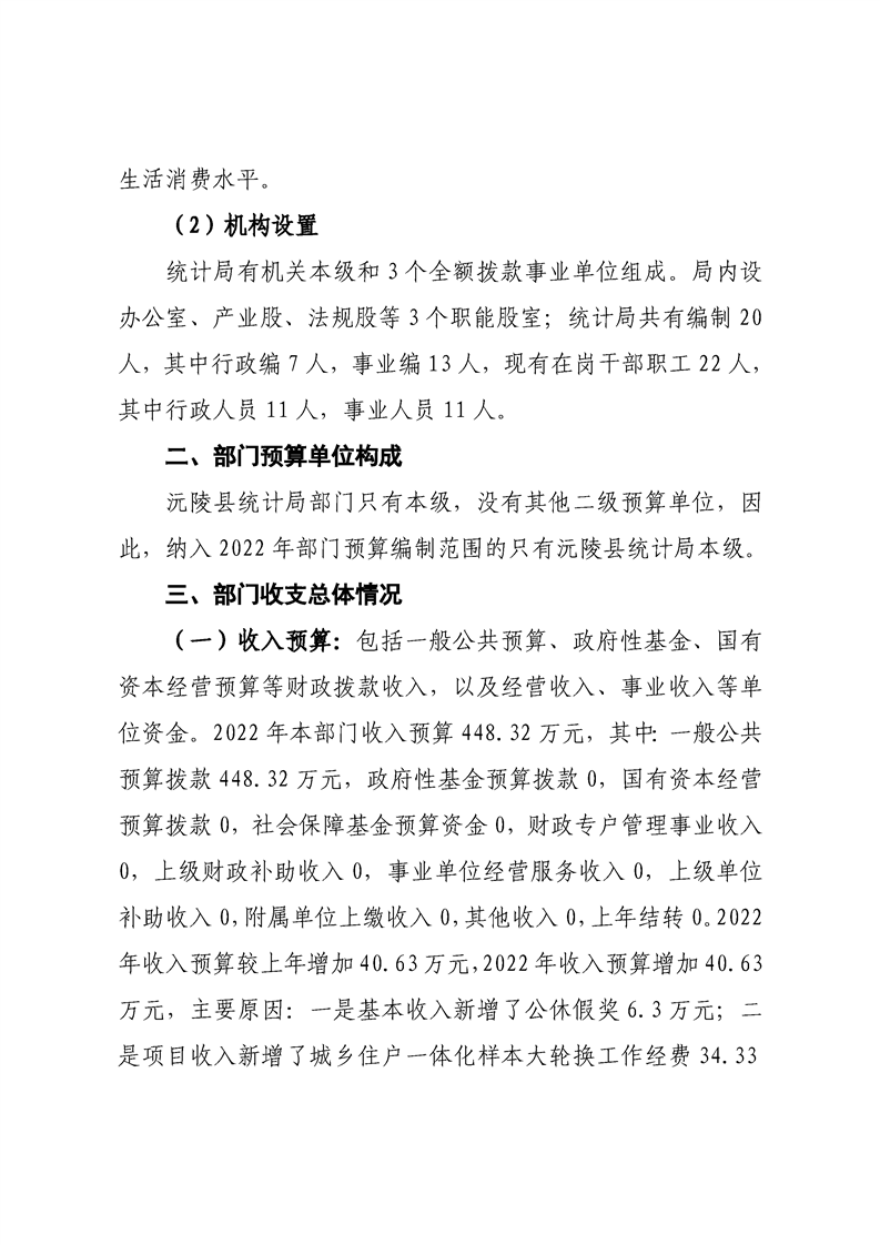 2022年沅陵县统计局预算公开