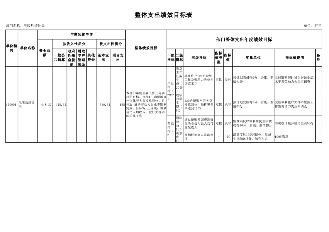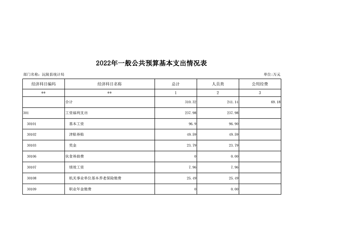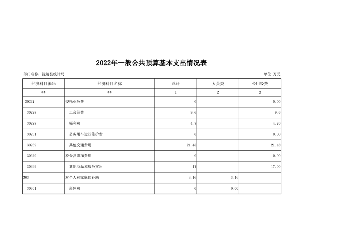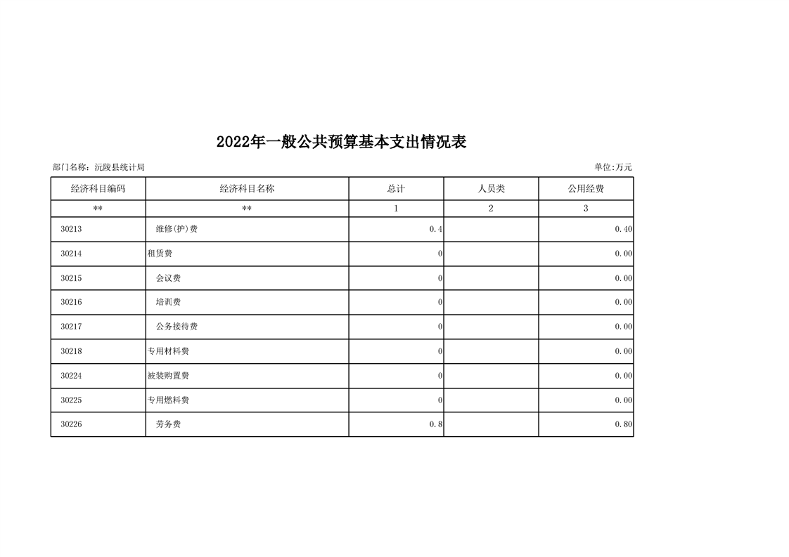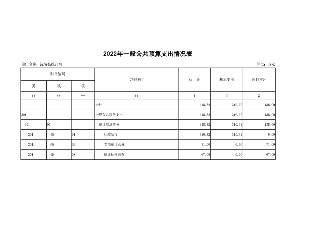 2022年沅陵县统计局预算公开