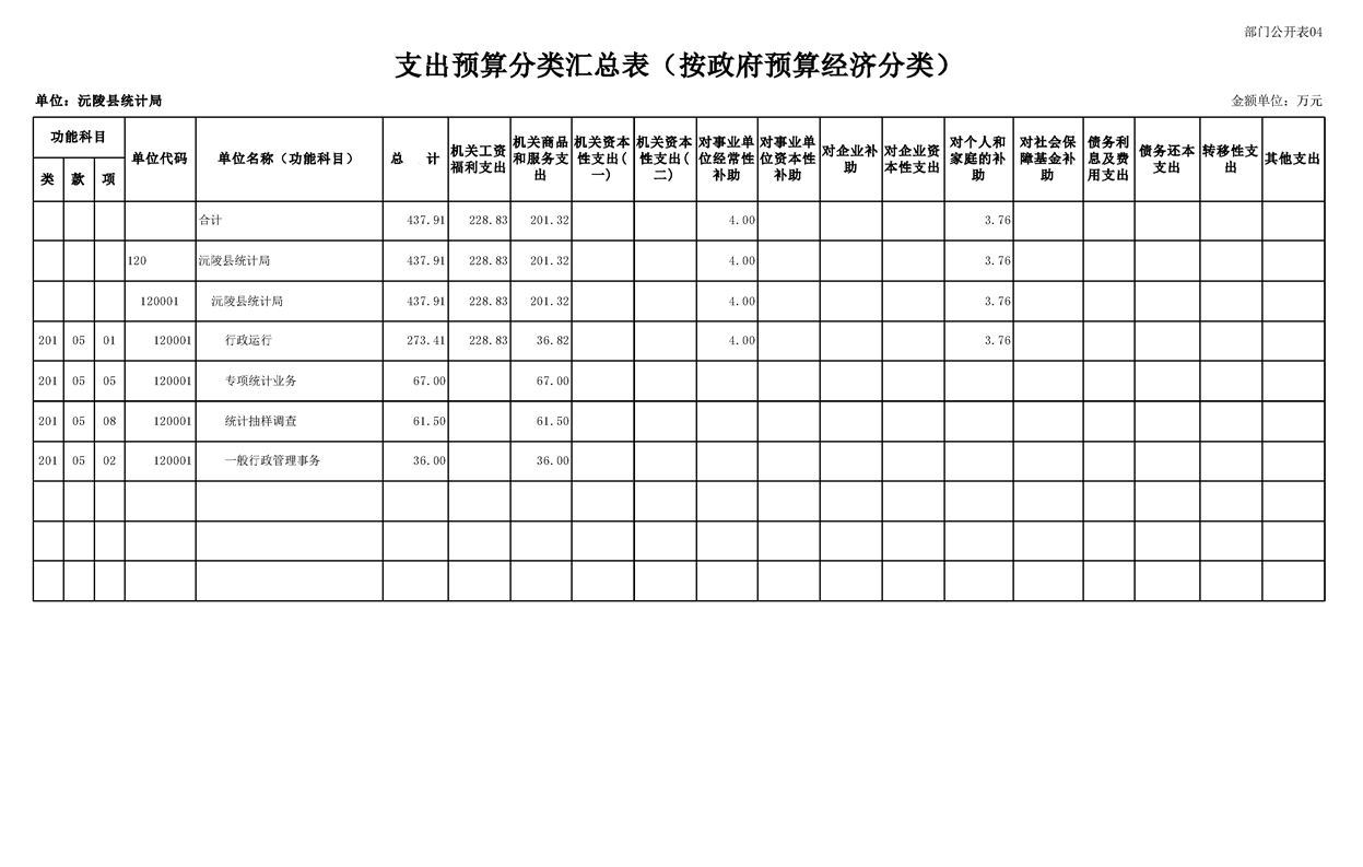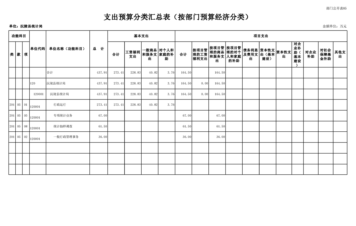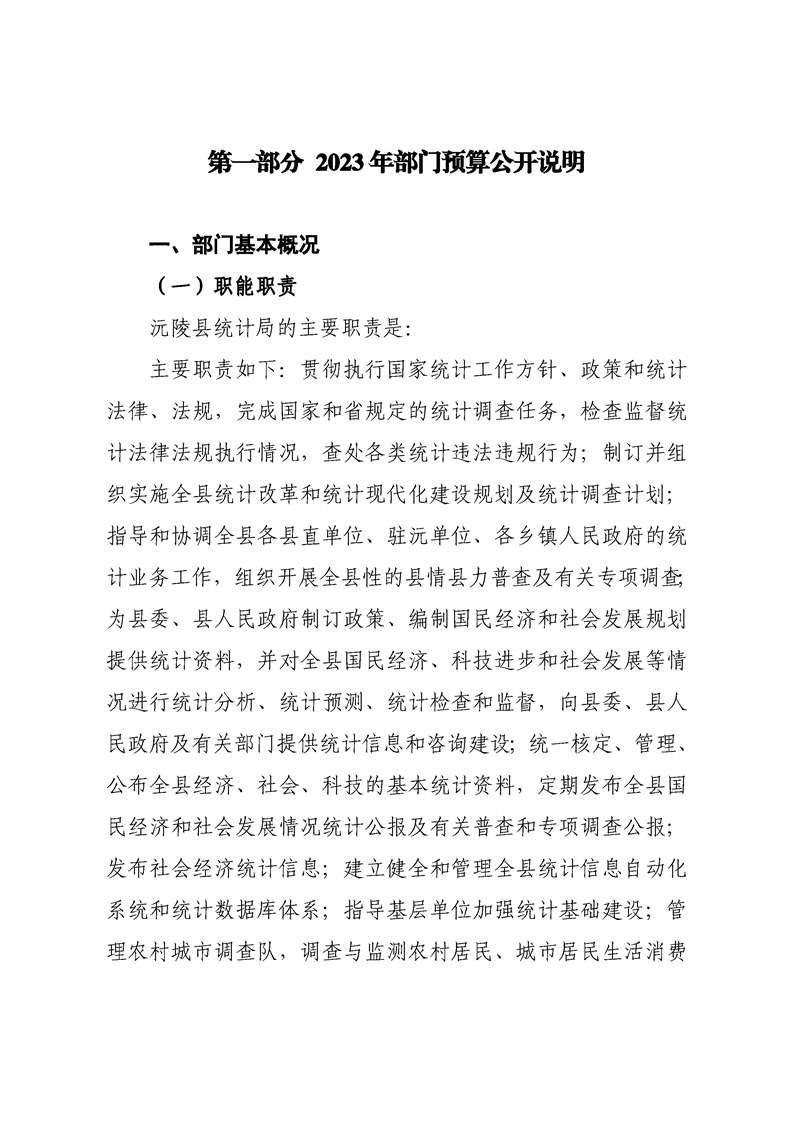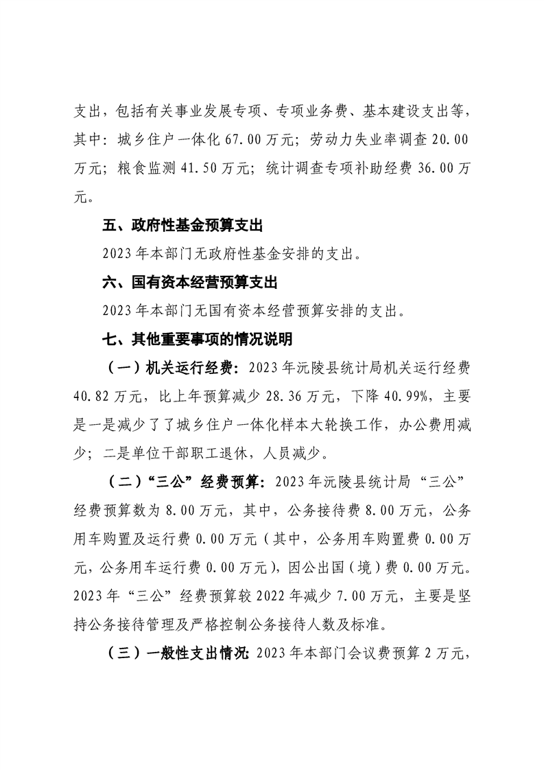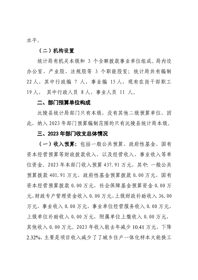 2023年沅陵县统计局预算公开