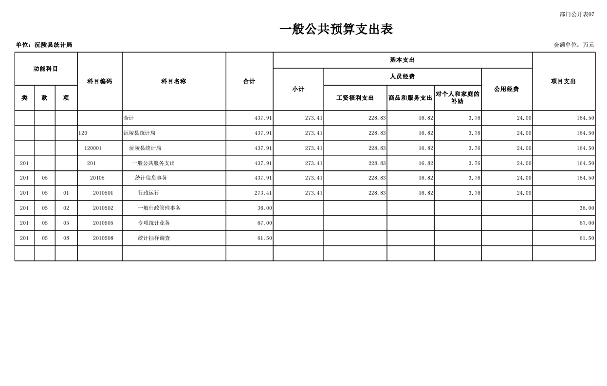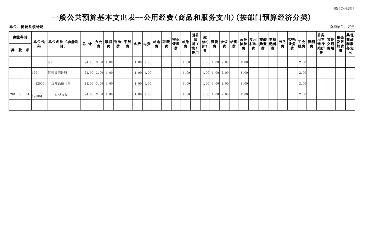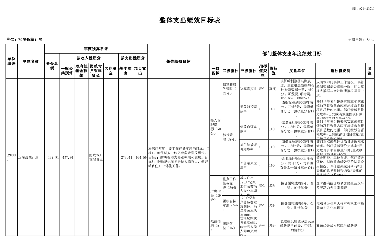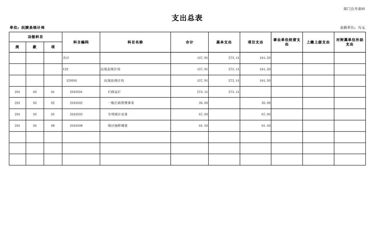 2023年沅陵县统计局预算公开