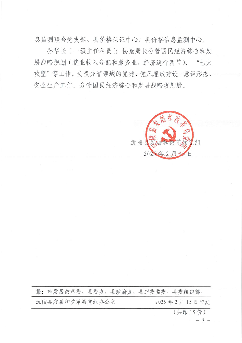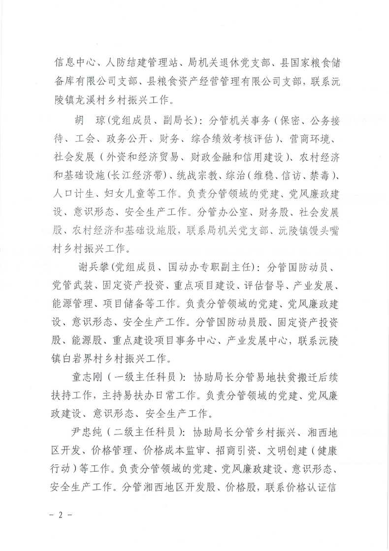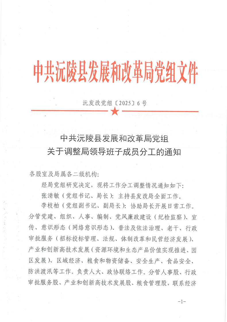 中共沅陵县发展和改革局党组关于调整局领导班子成员分工的通知