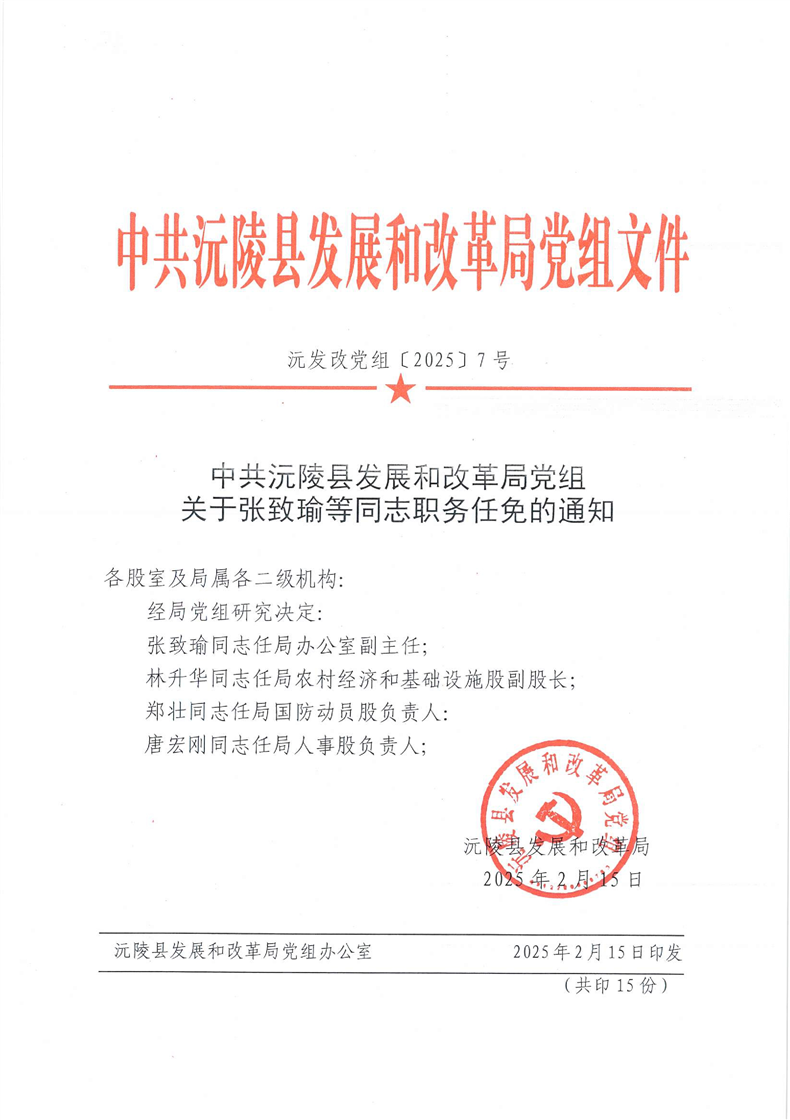 中共沅陵县发展和改革局党组关于张致瑜等同志职务任免的通知