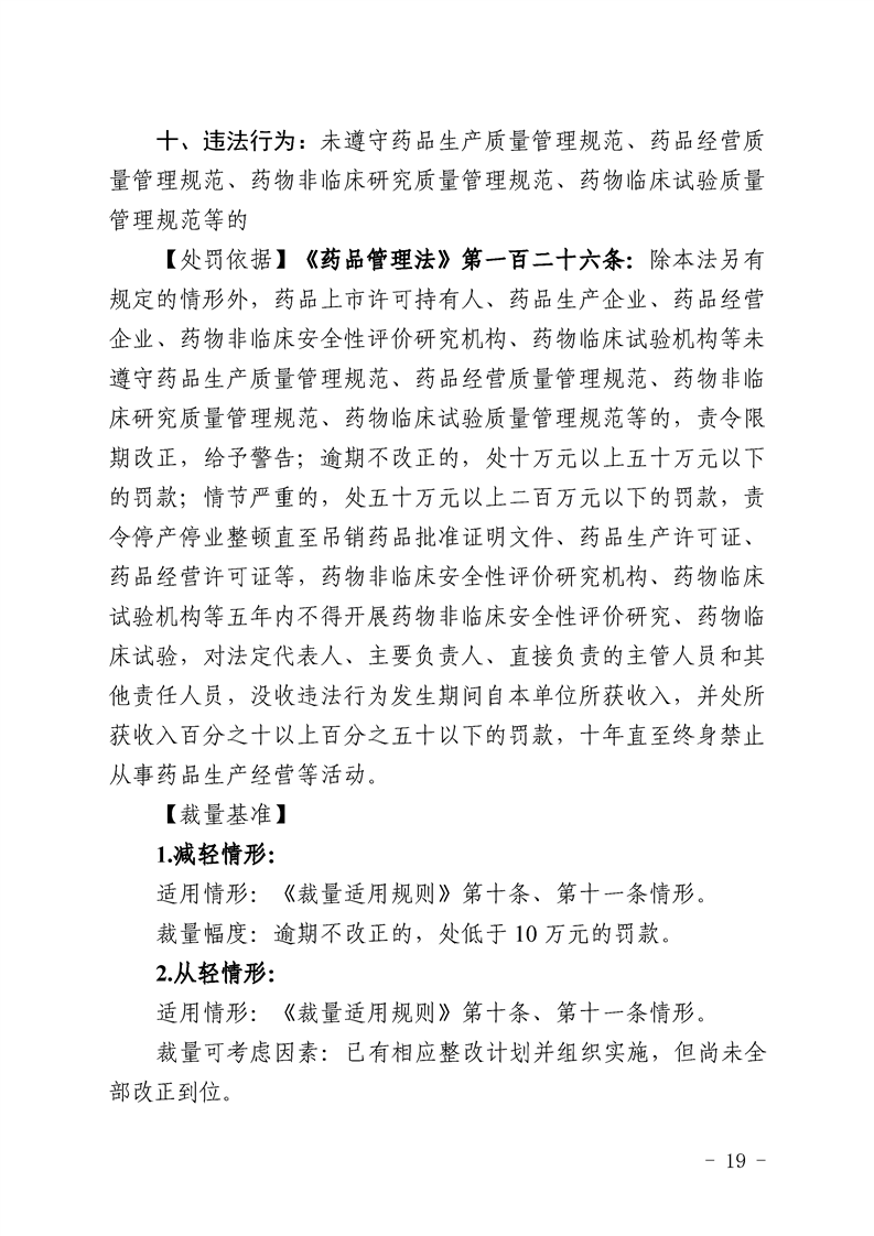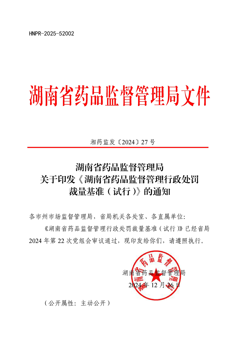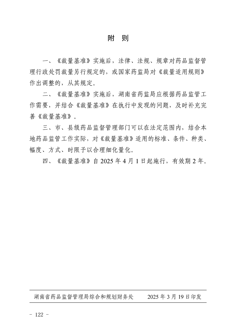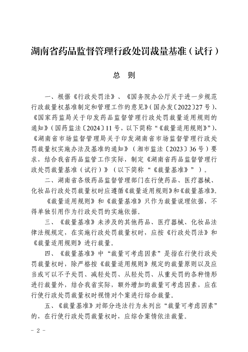 《湖南省药品监督管理行政处罚裁量基准(试行)》