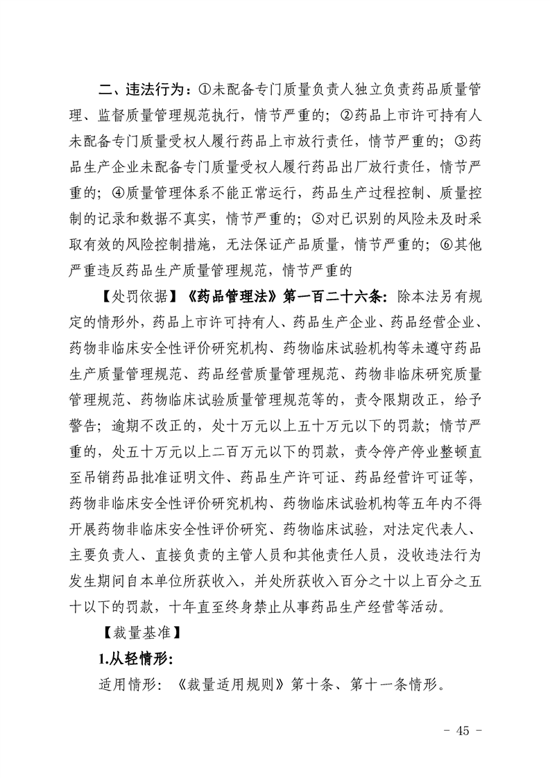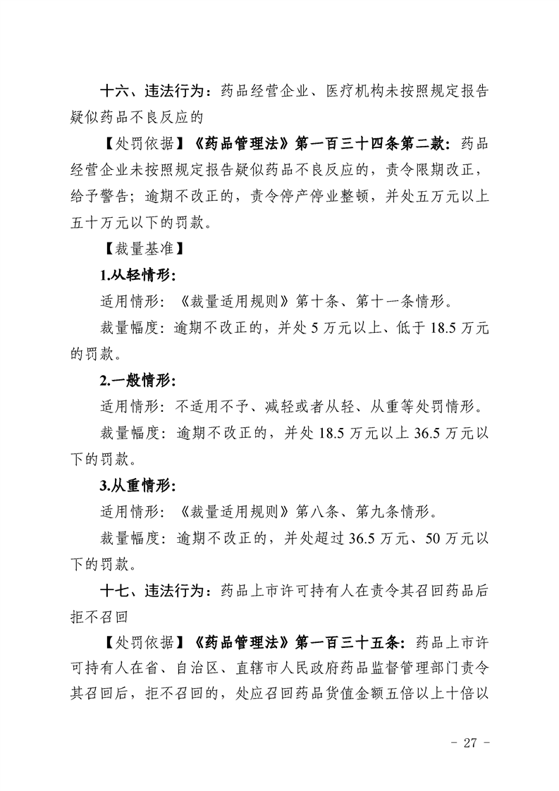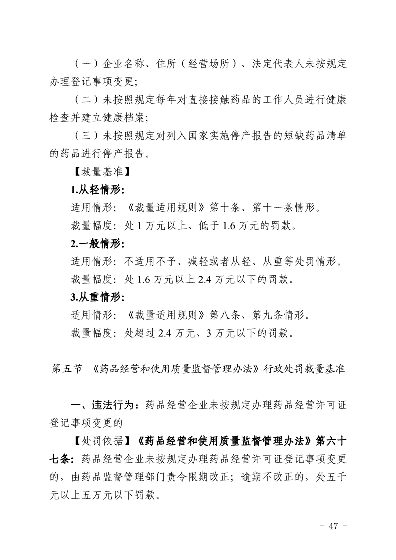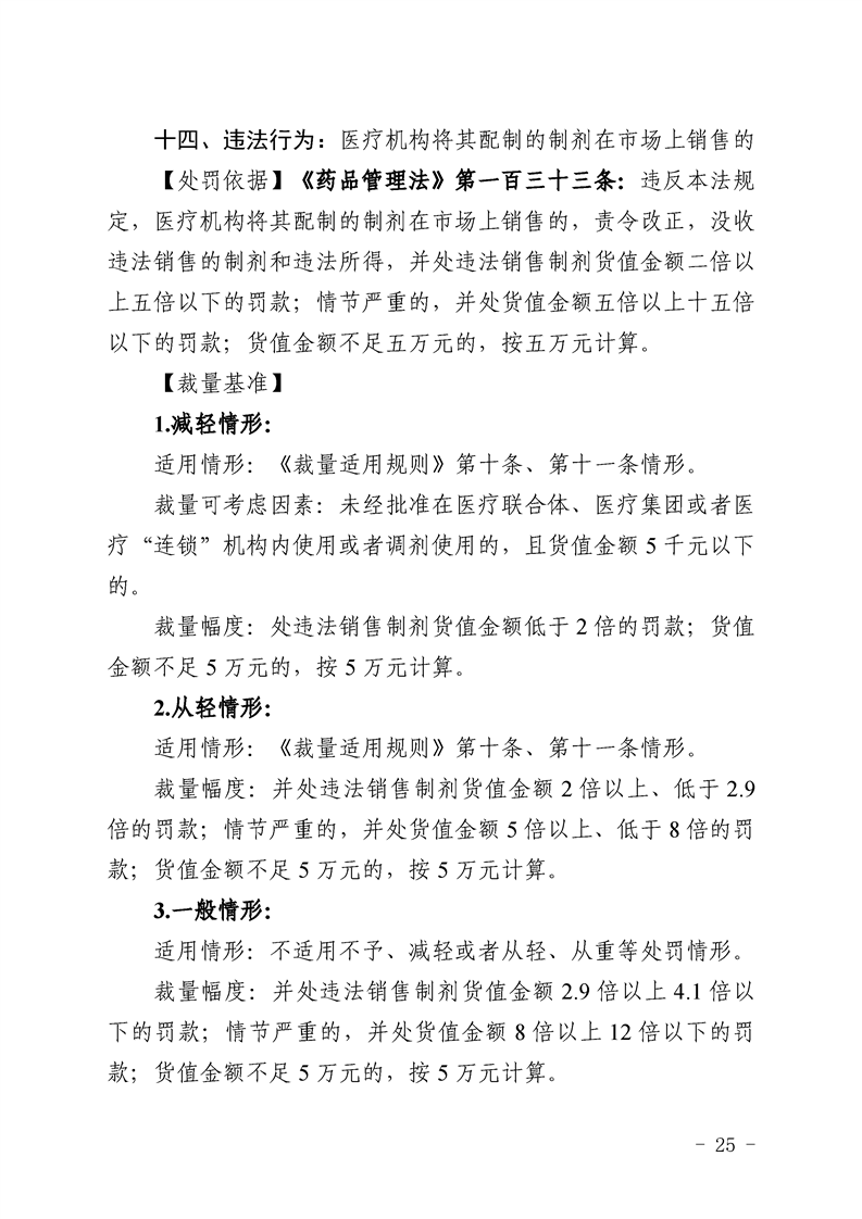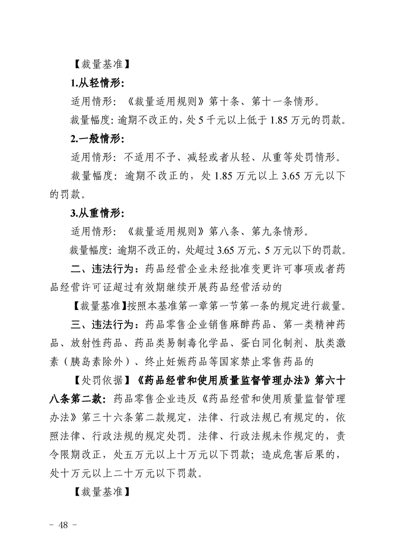 《湖南省药品监督管理行政处罚裁量基准(试行)》