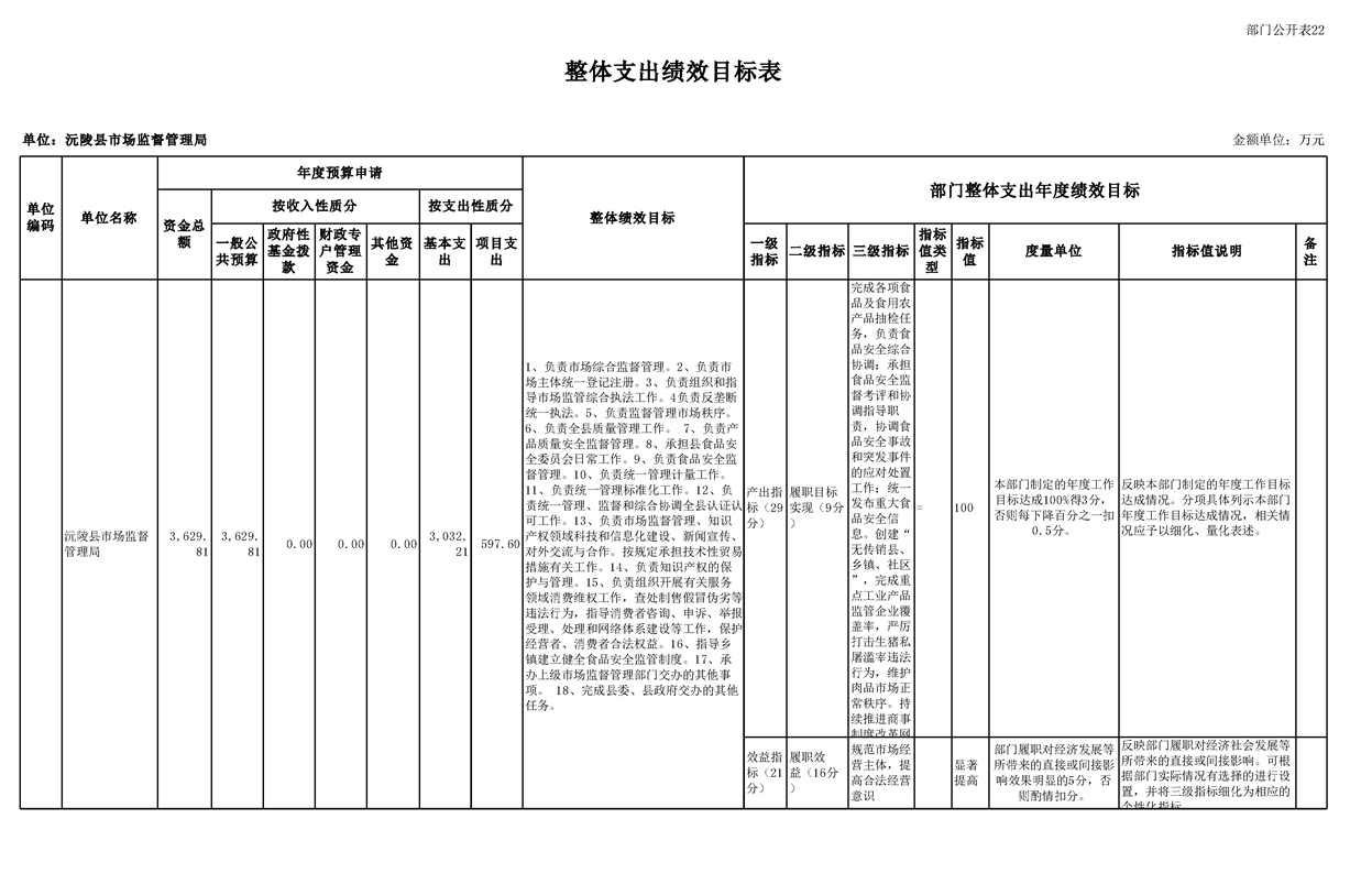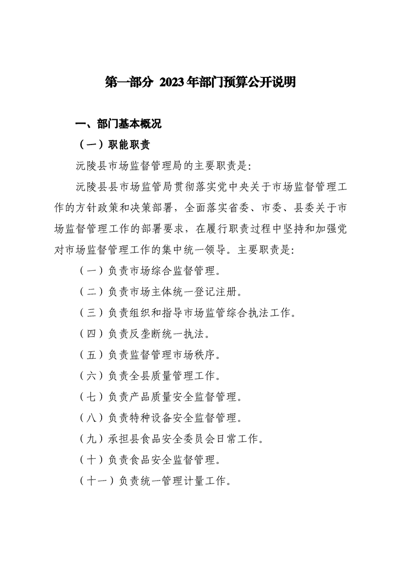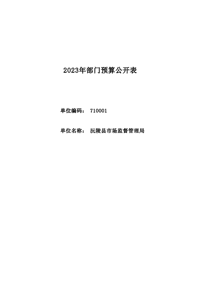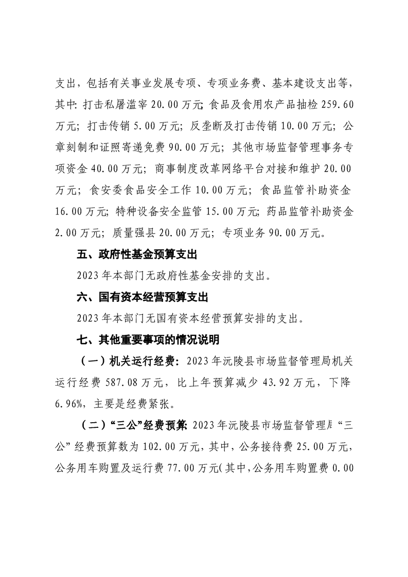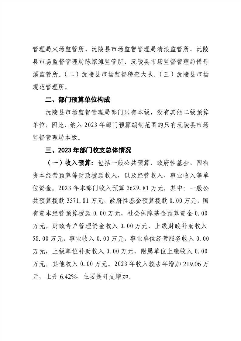 2023年沅陵县市场监督管理局预算公开