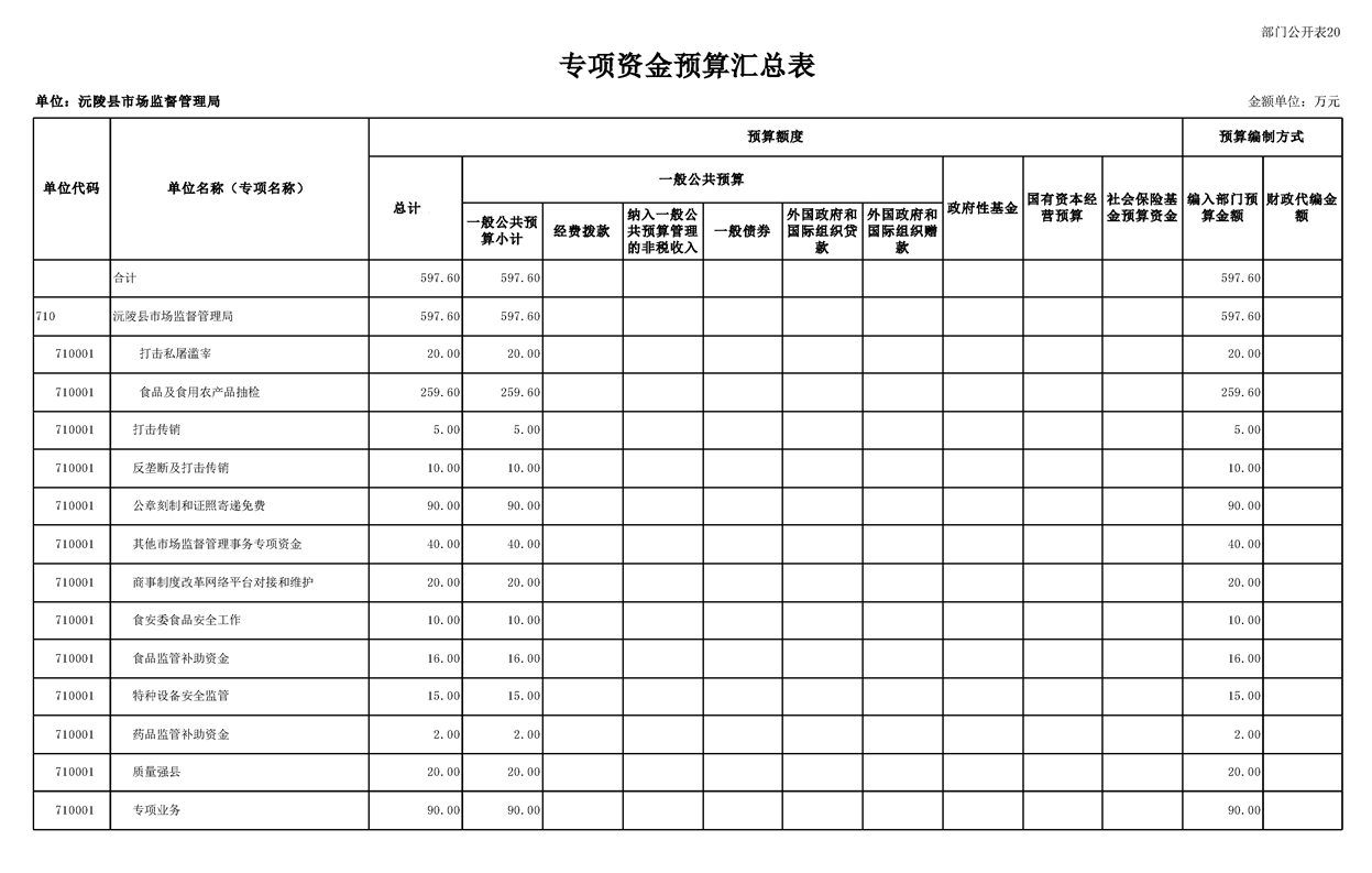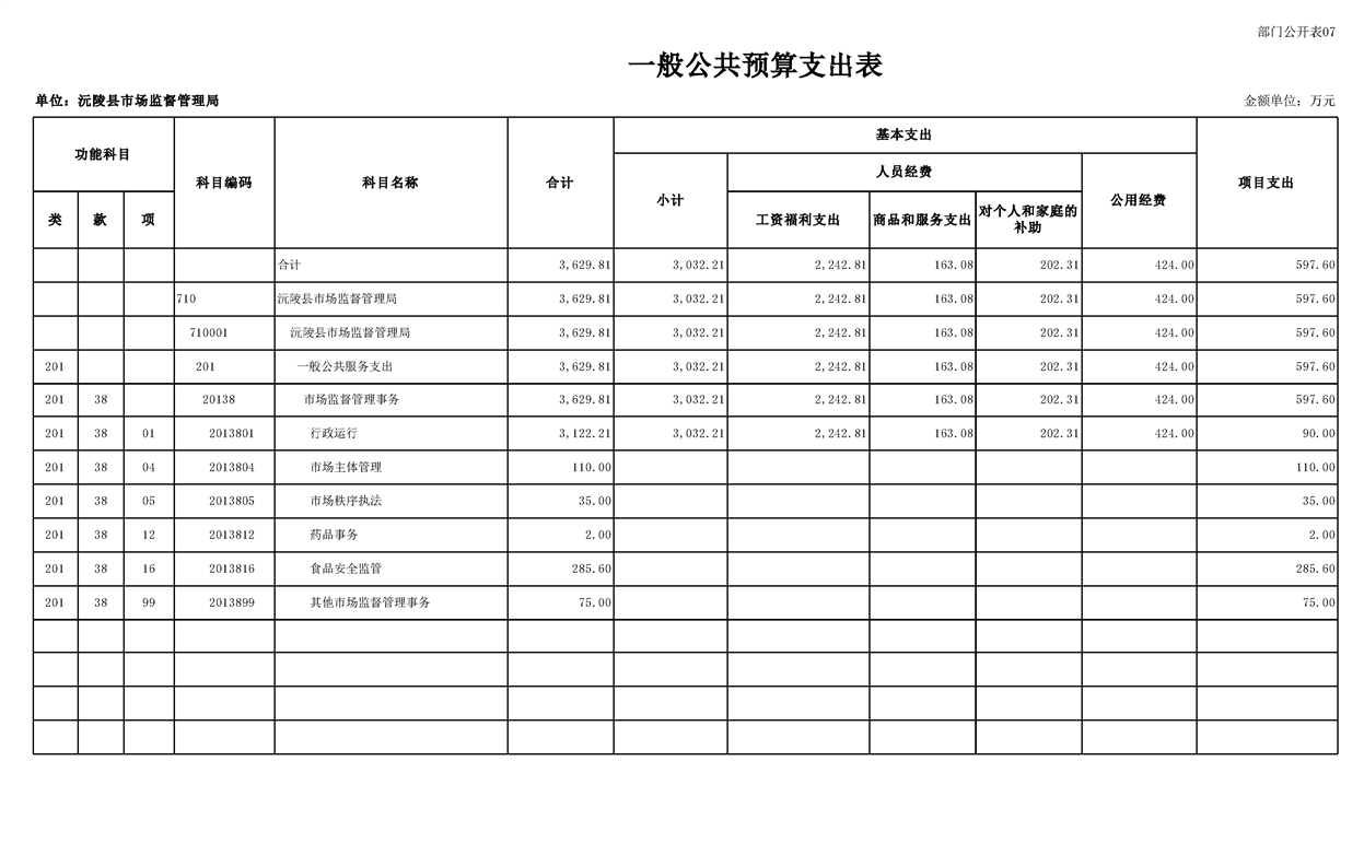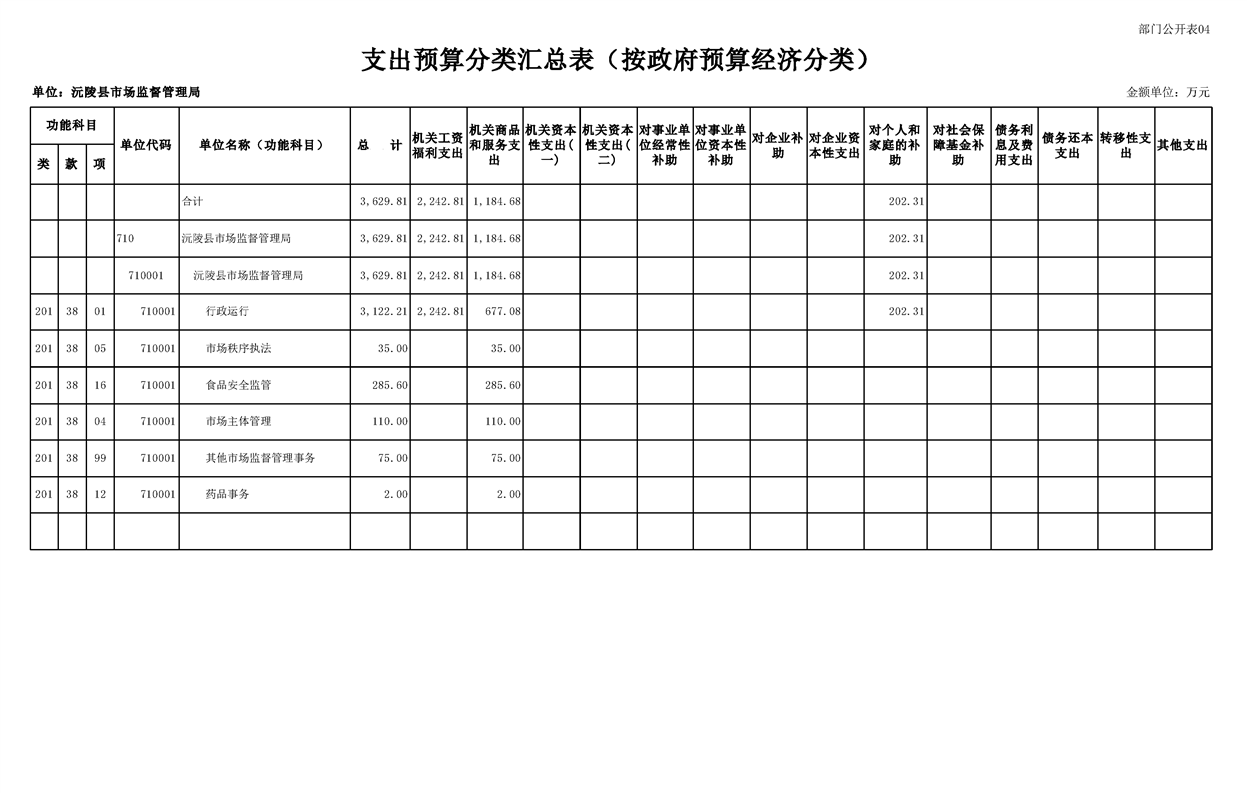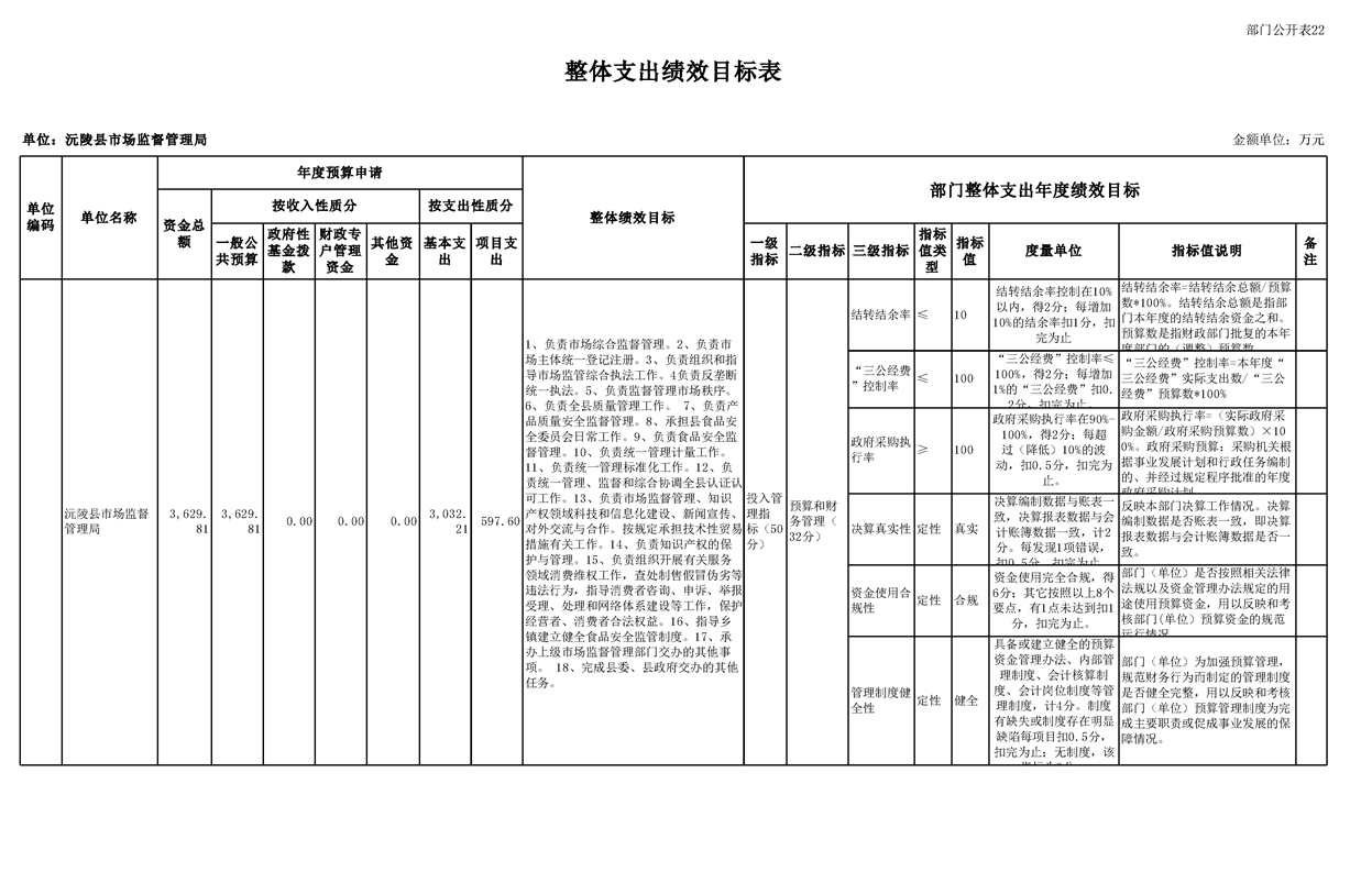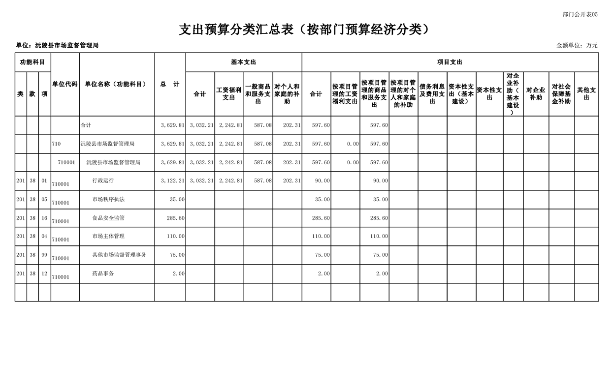 2023年沅陵县市场监督管理局预算公开