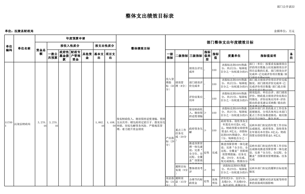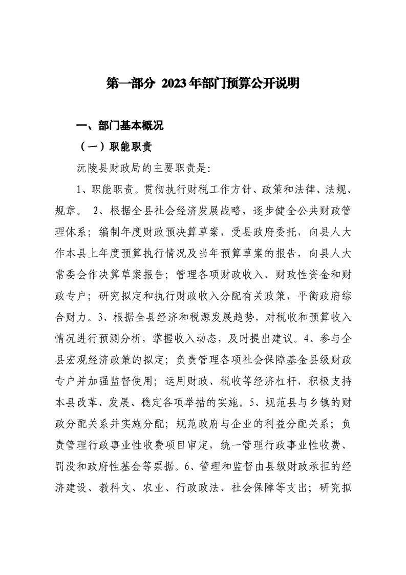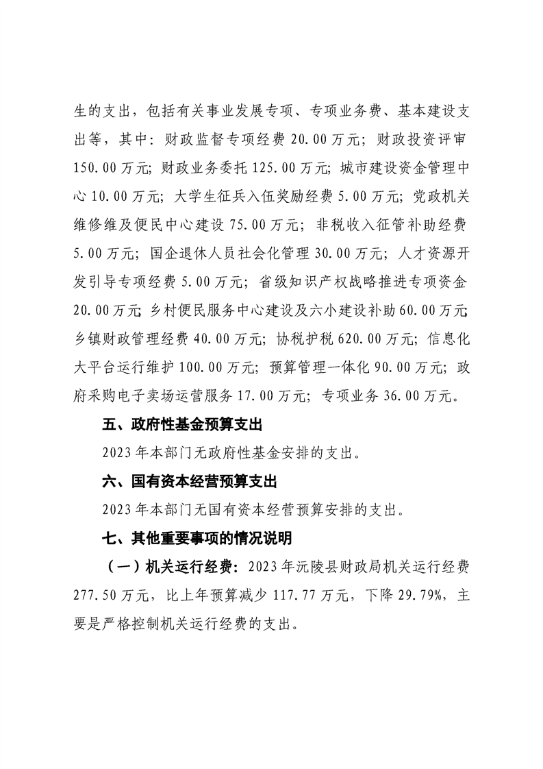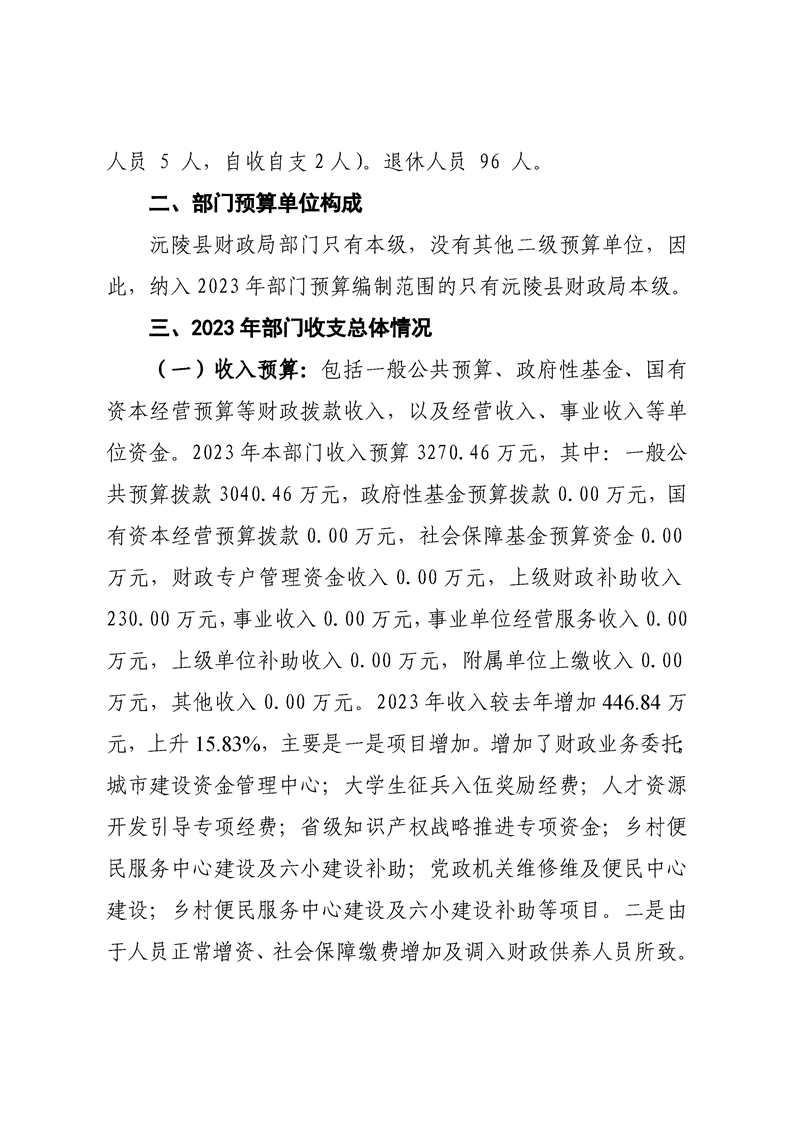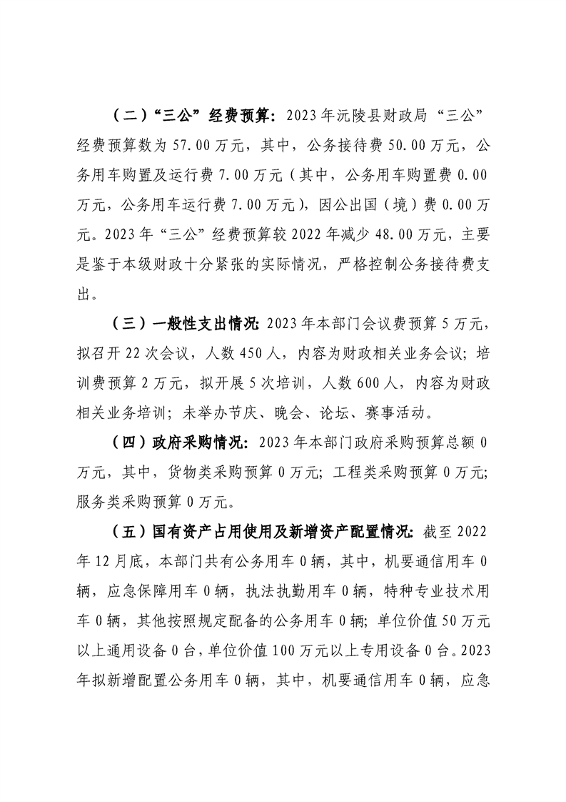 2023年沅陵县财政局预算公开