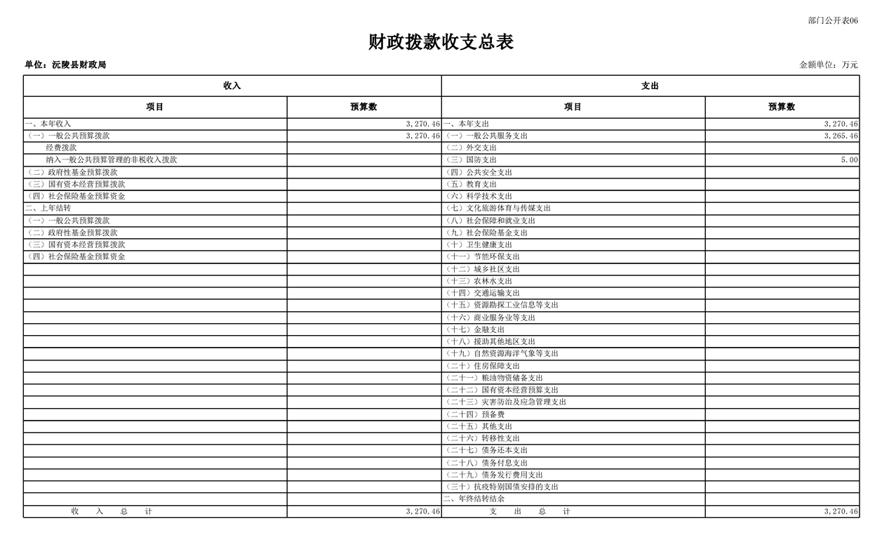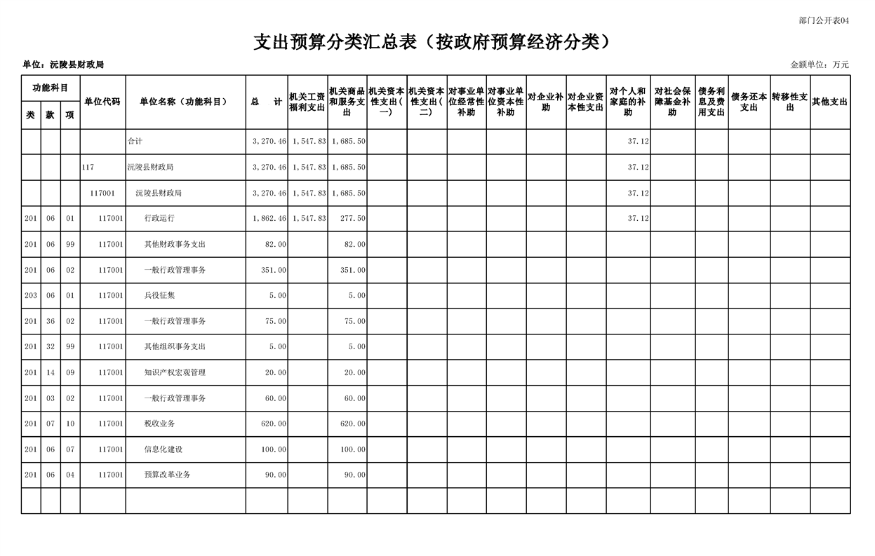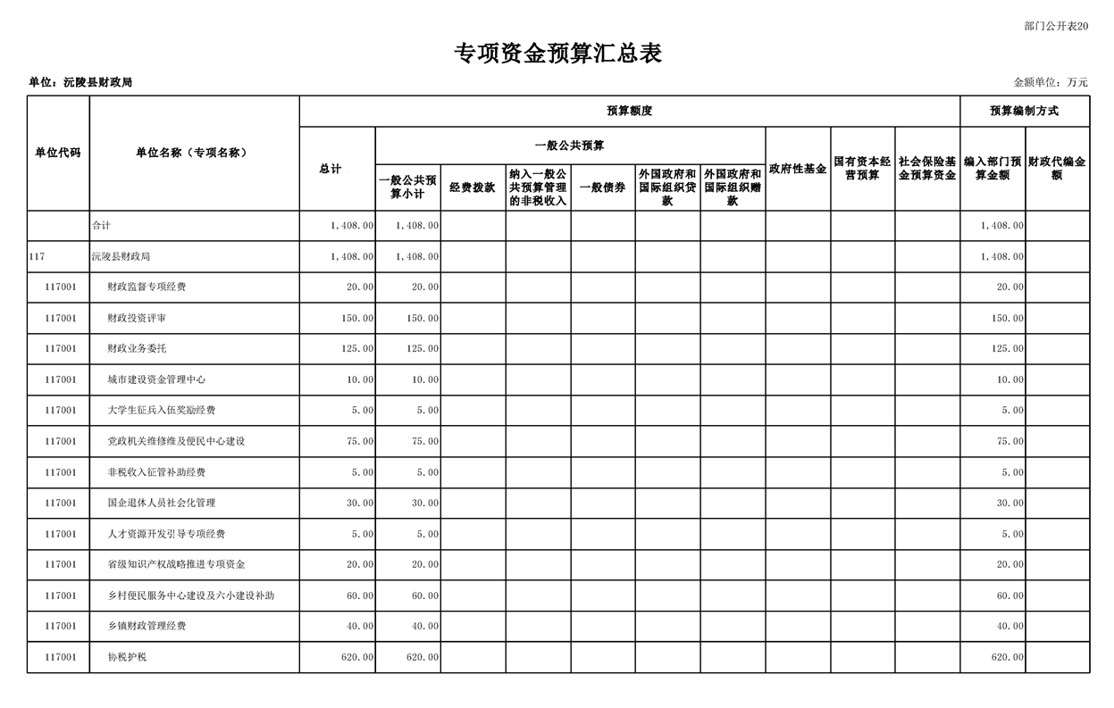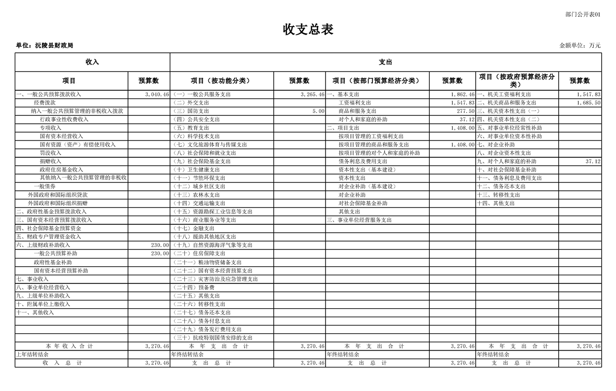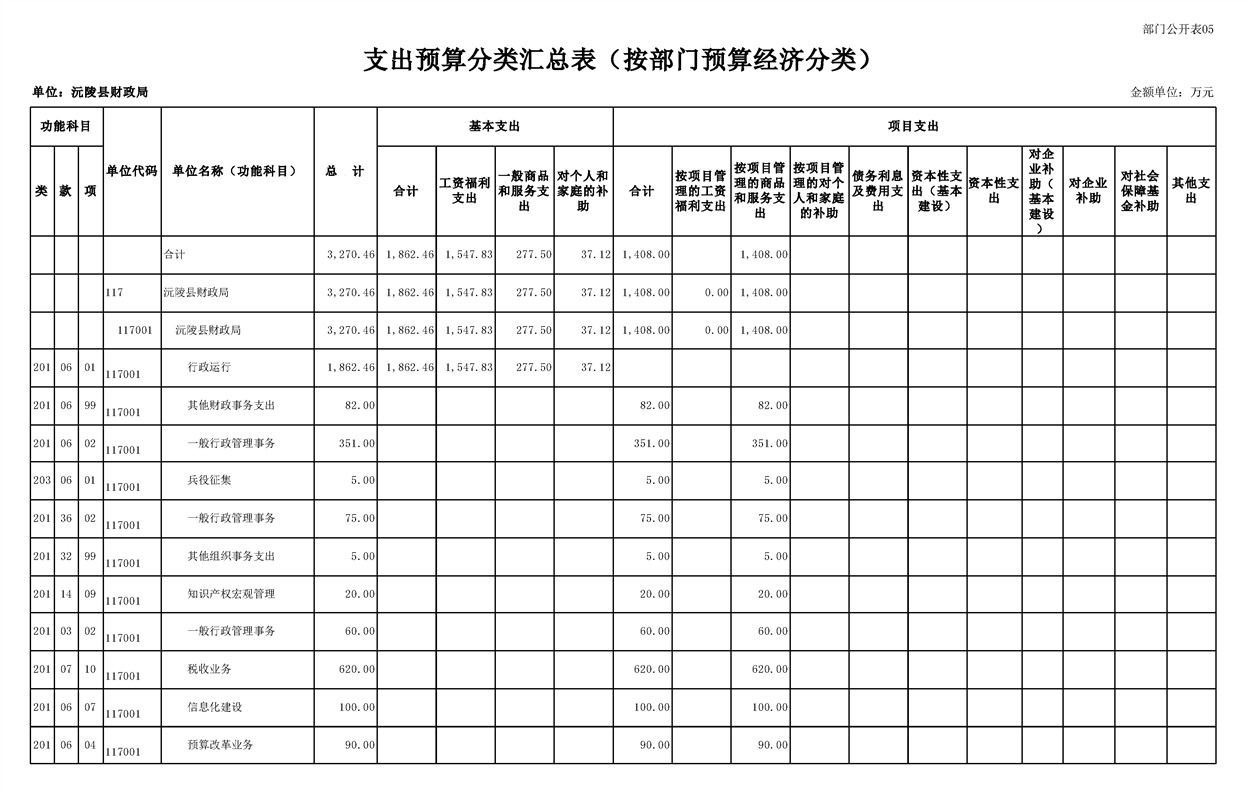 2023年沅陵县财政局预算公开