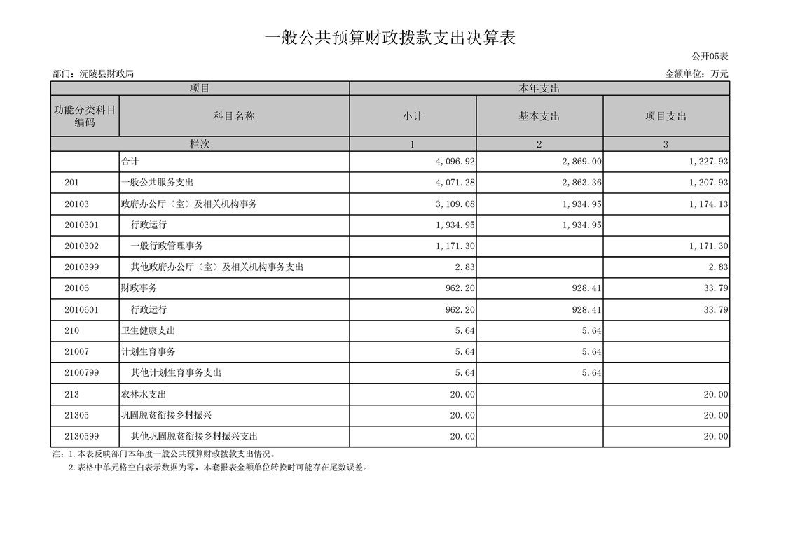 2022年度沅陵县财政局部门决算