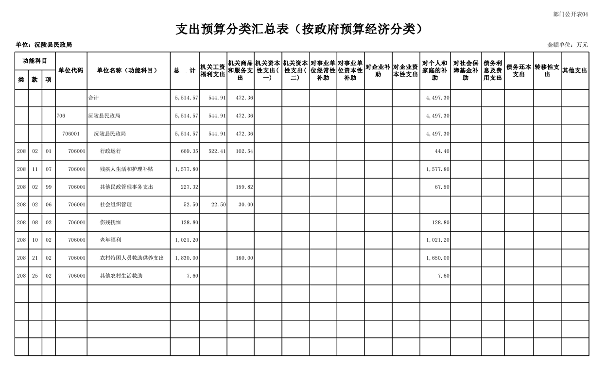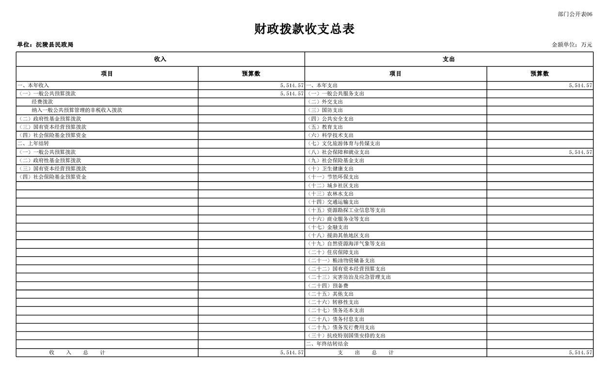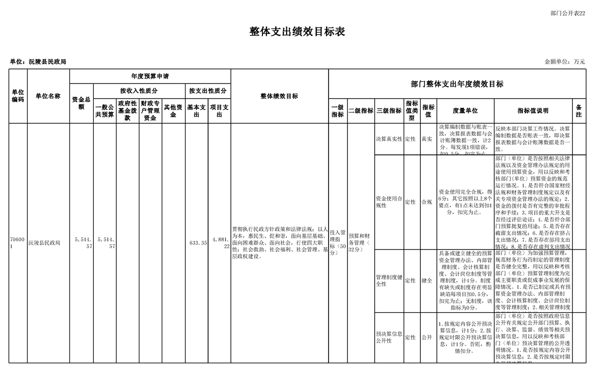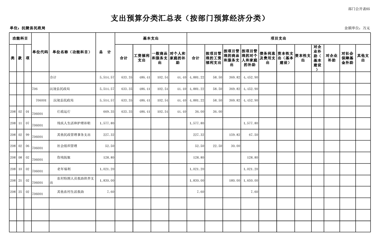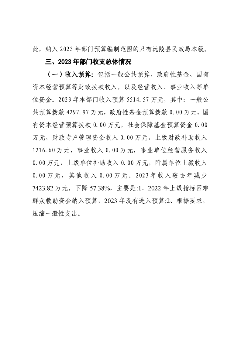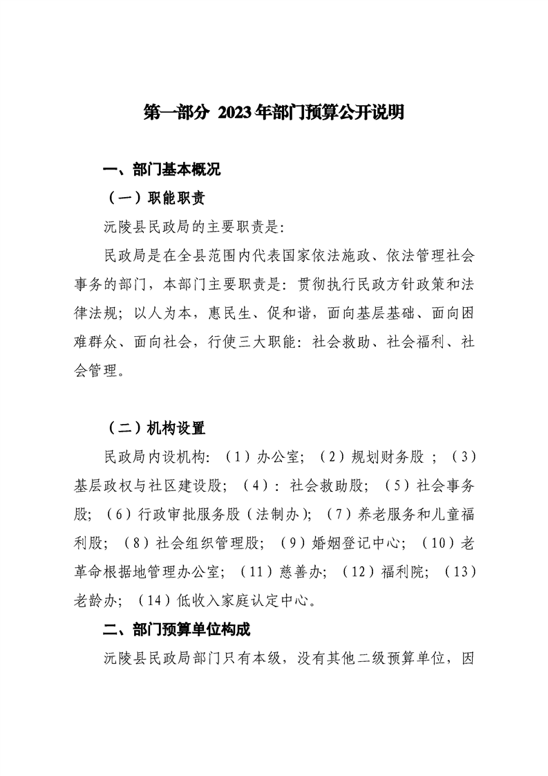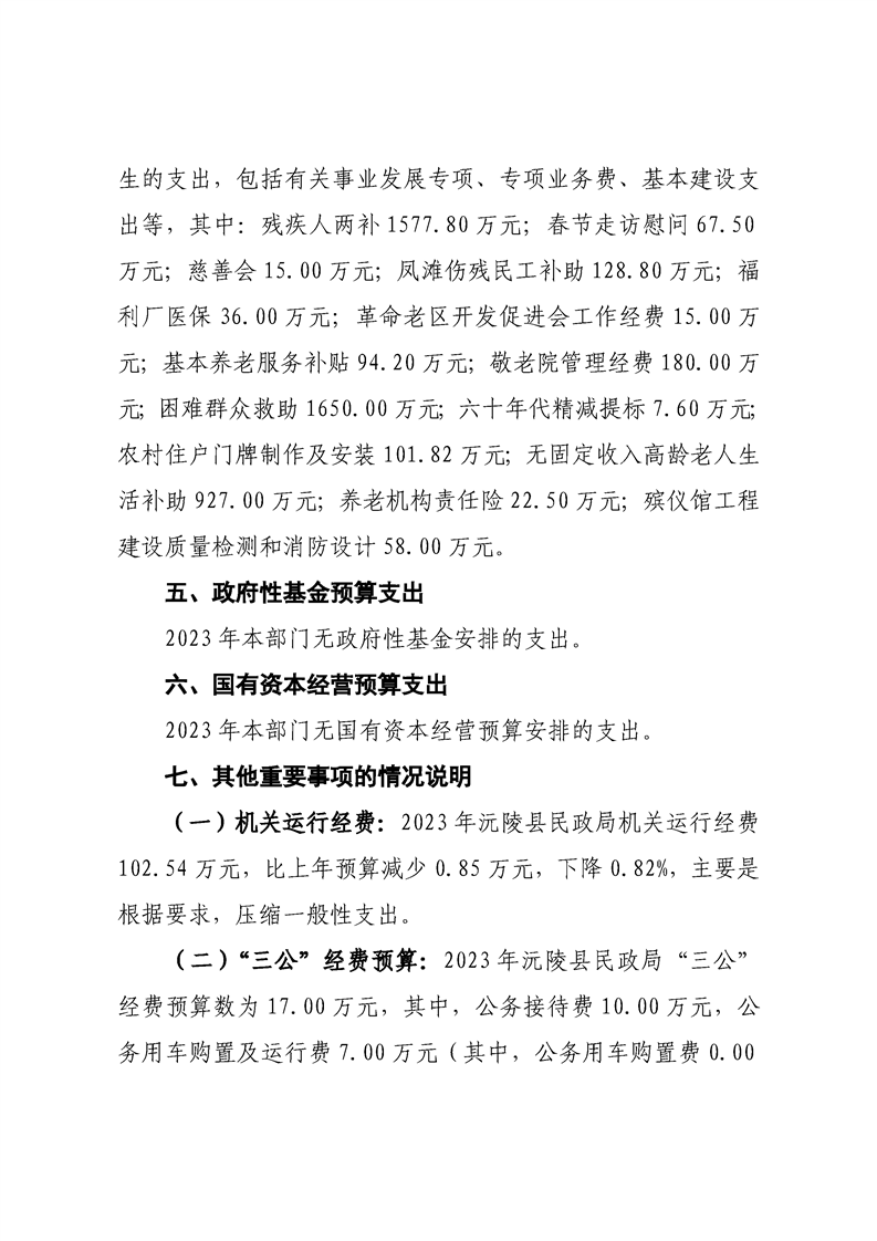 2023年沅陵县民政局预算公开