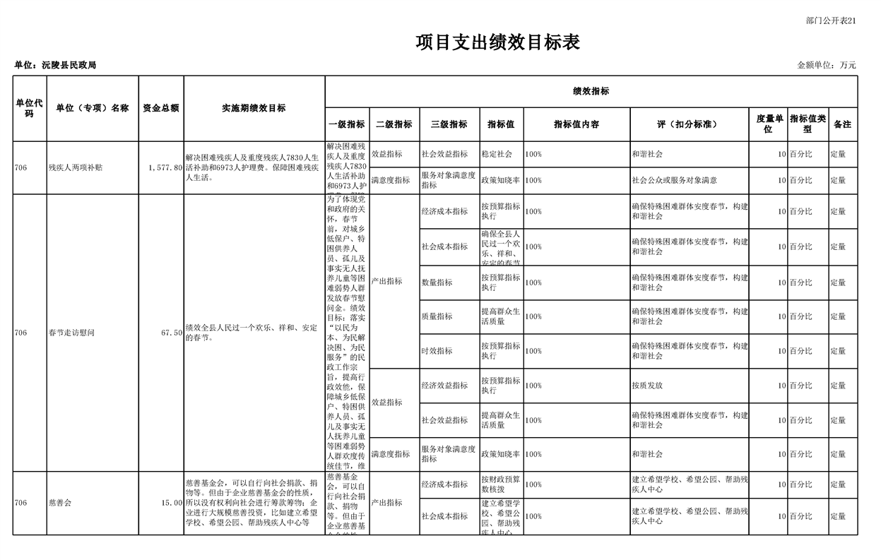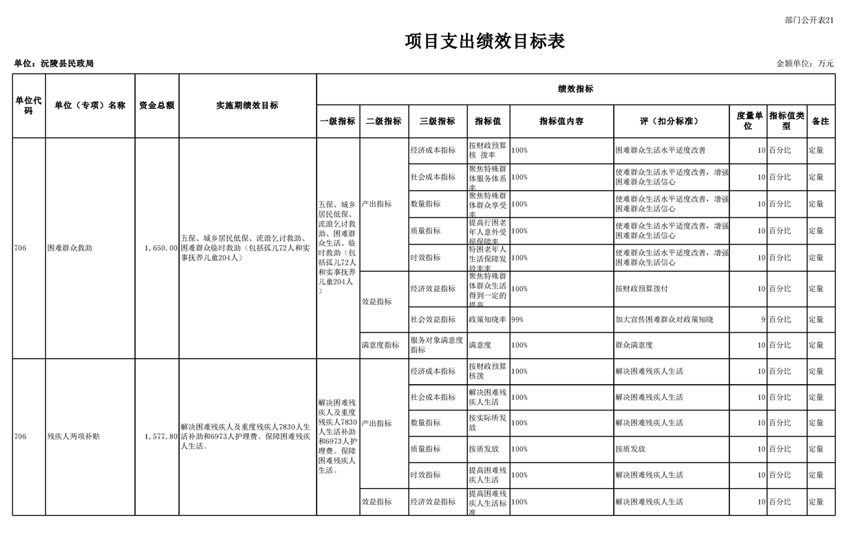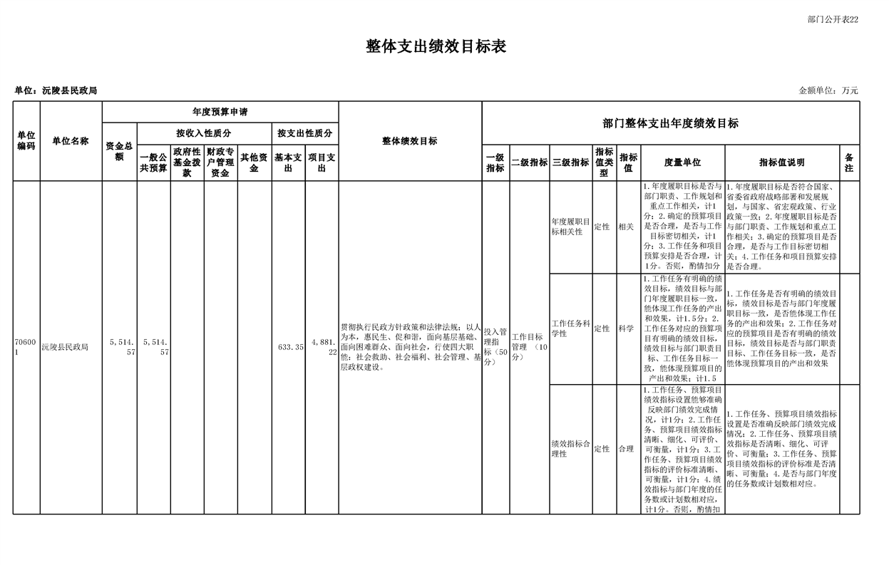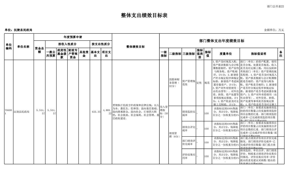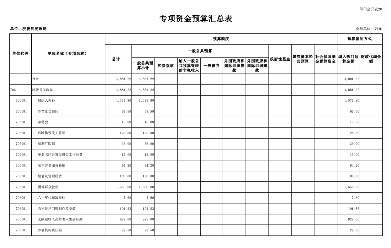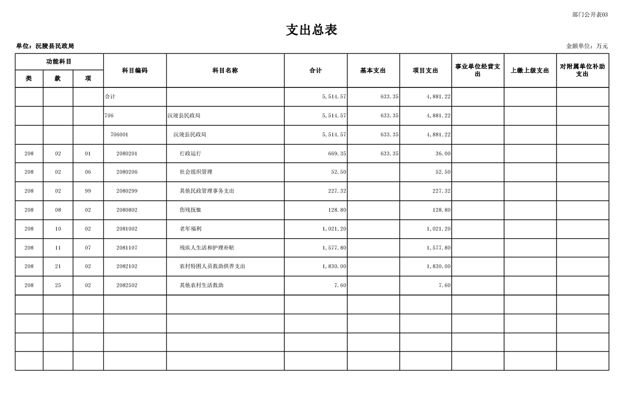 2023年沅陵县民政局预算公开