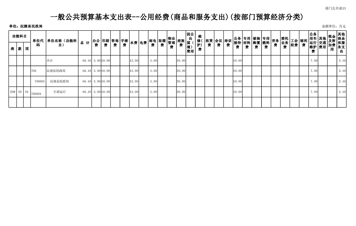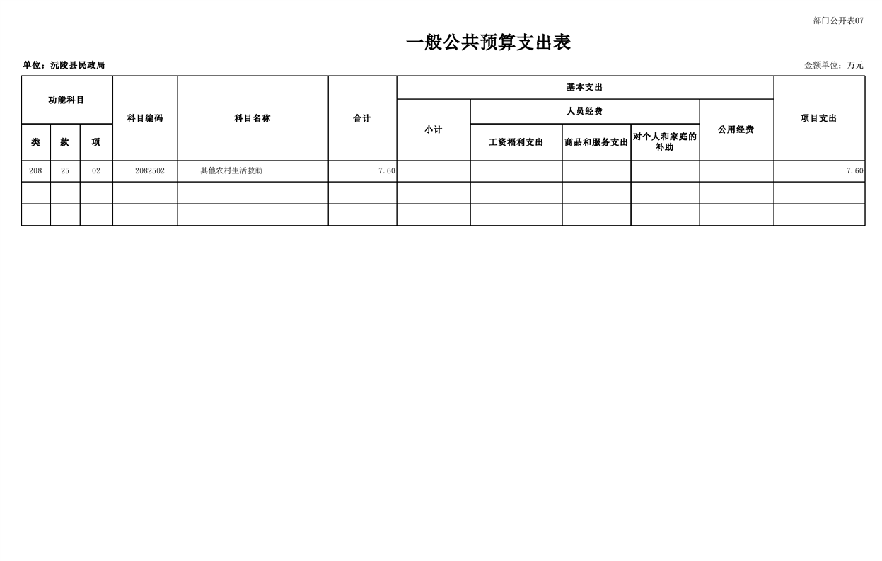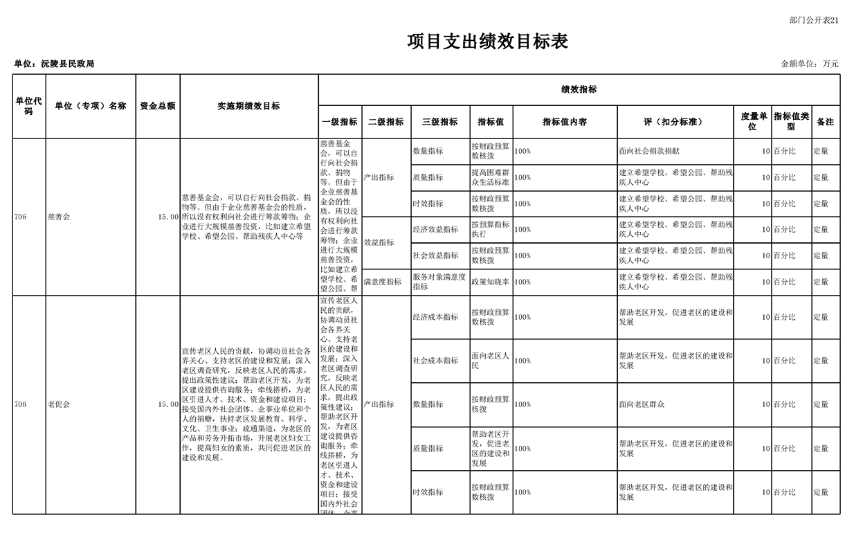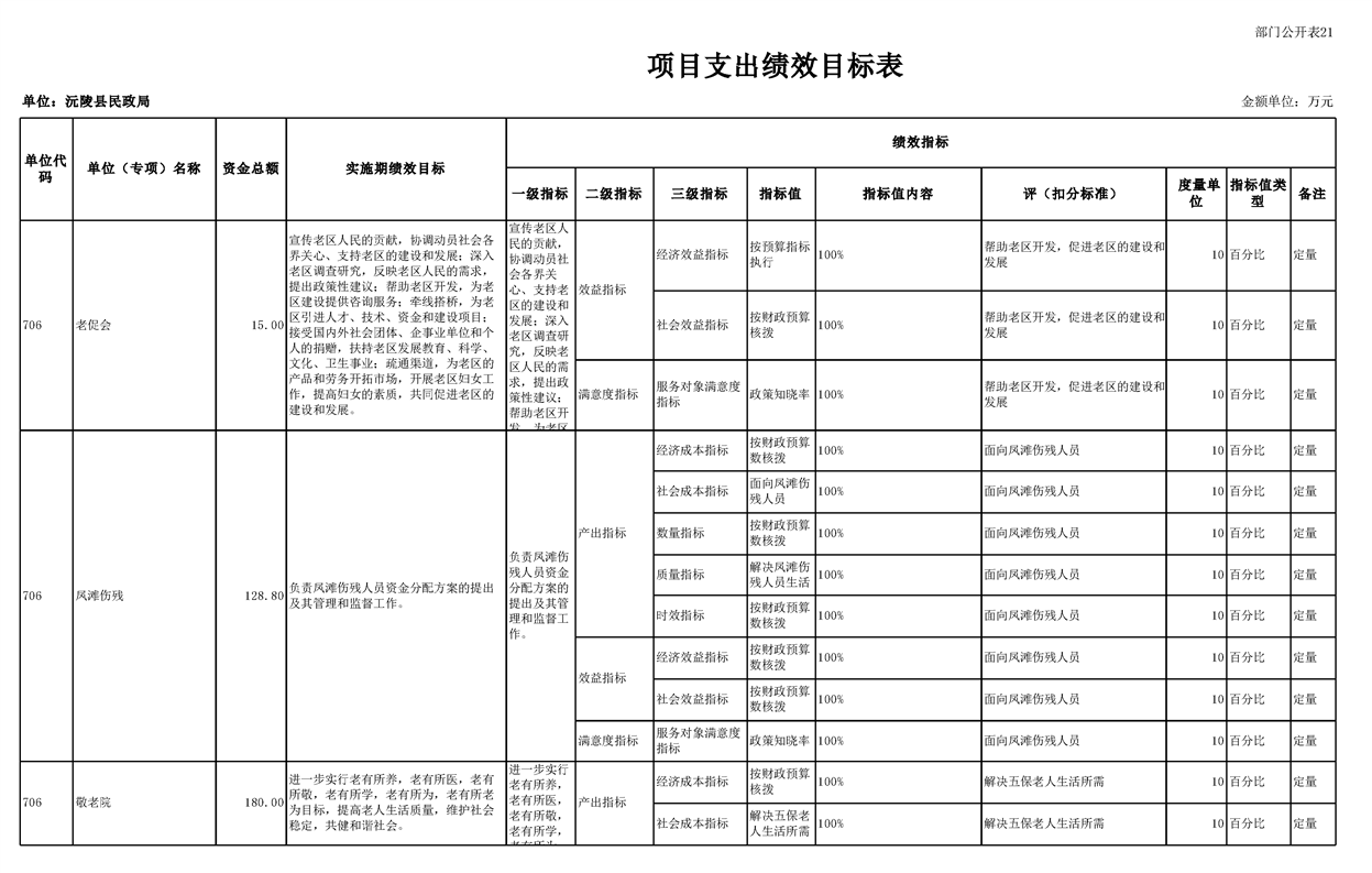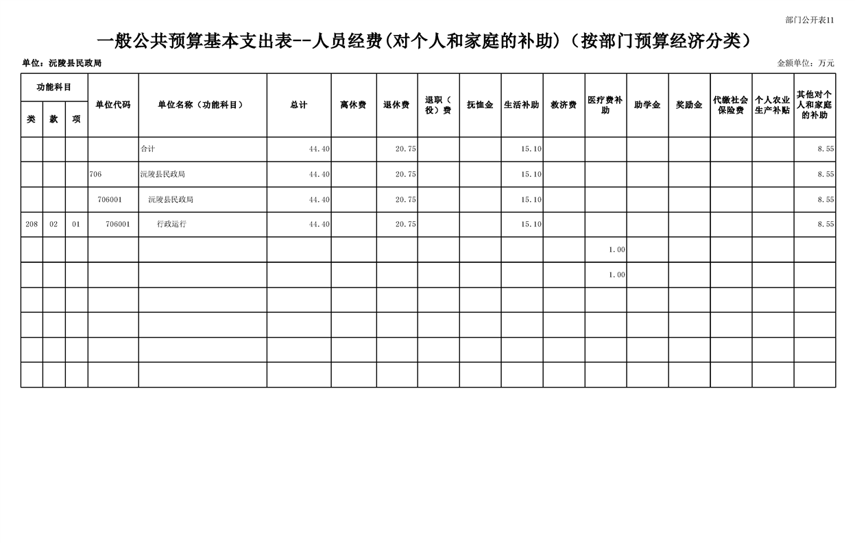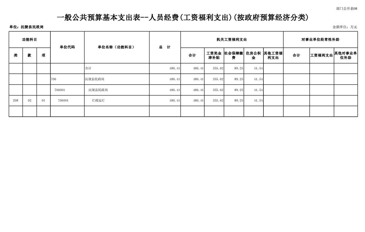 2023年沅陵县民政局预算公开