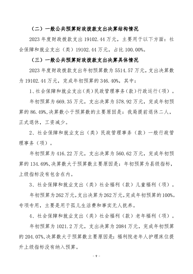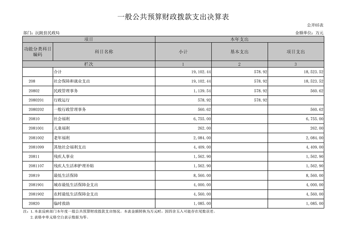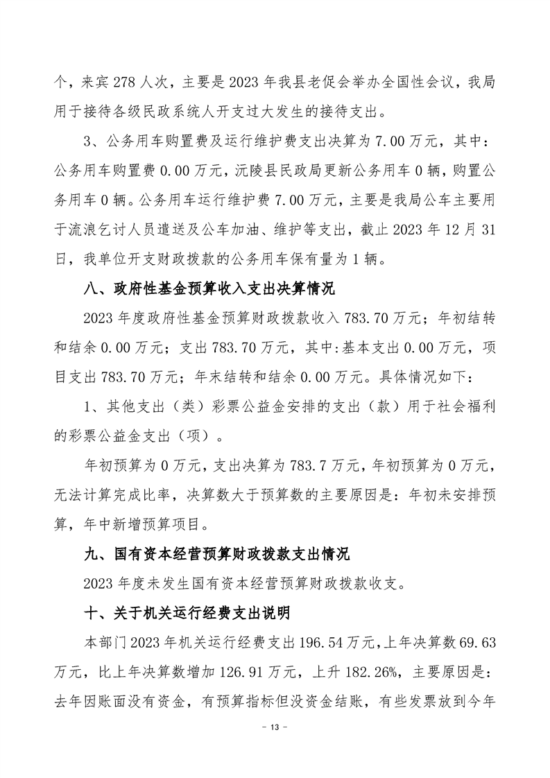 2023年度沅陵县民政局部门决算