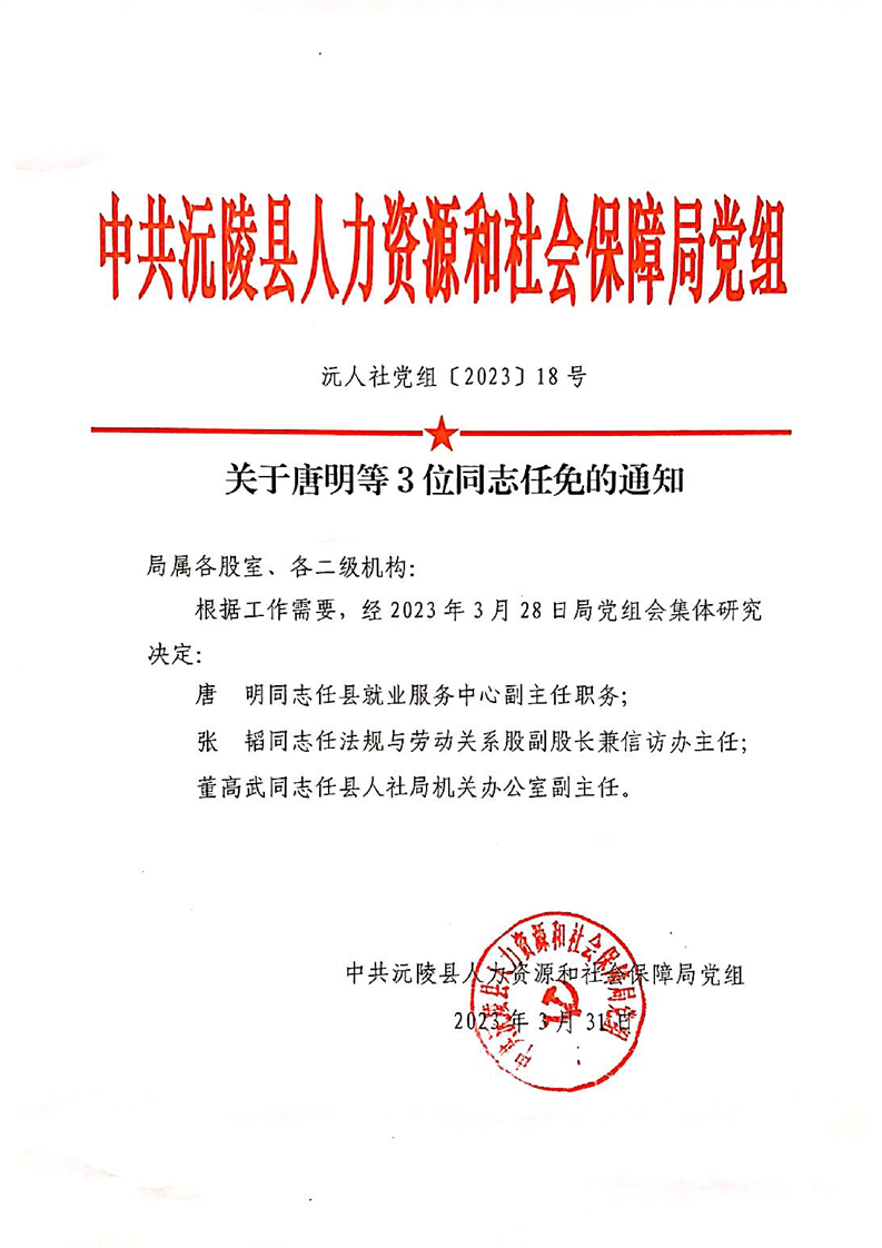 关于唐明等3位同志任免的通知