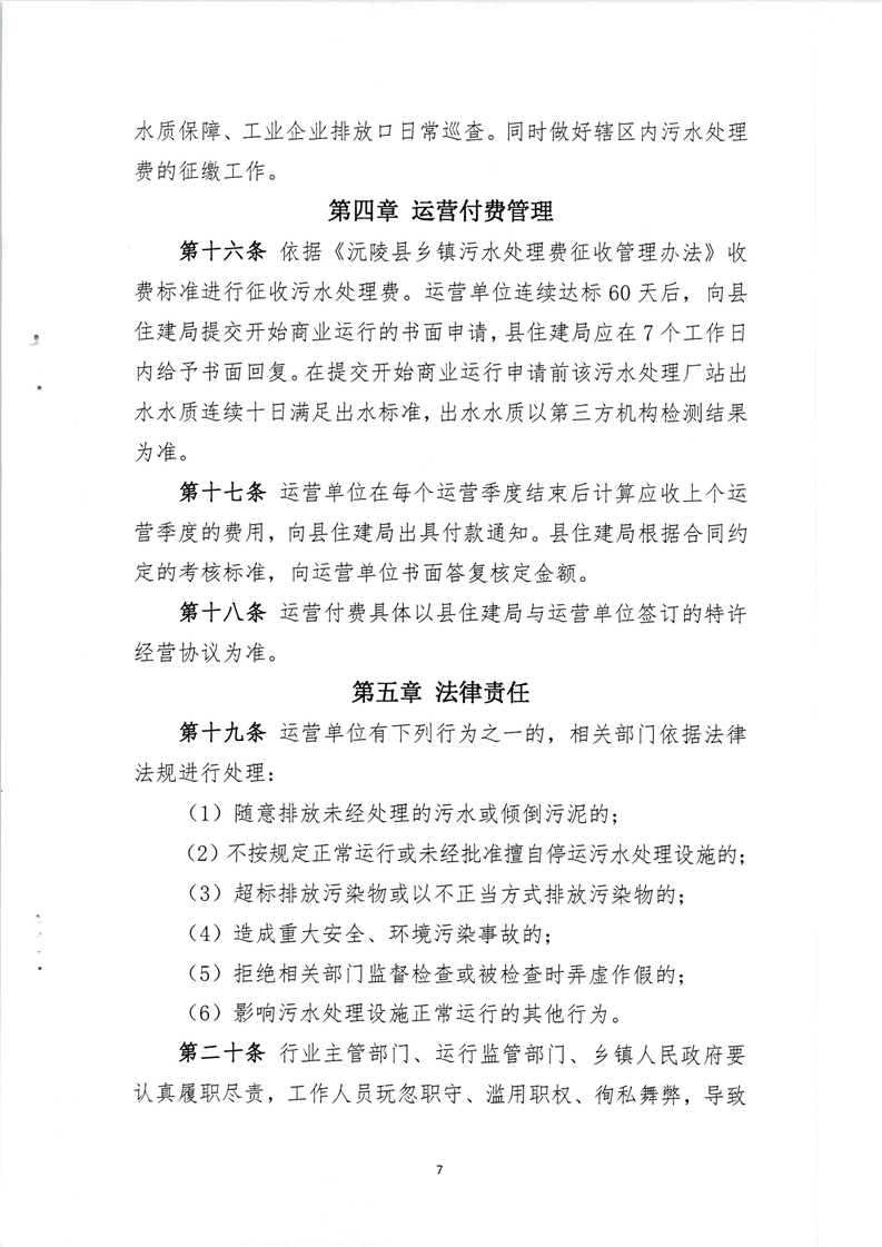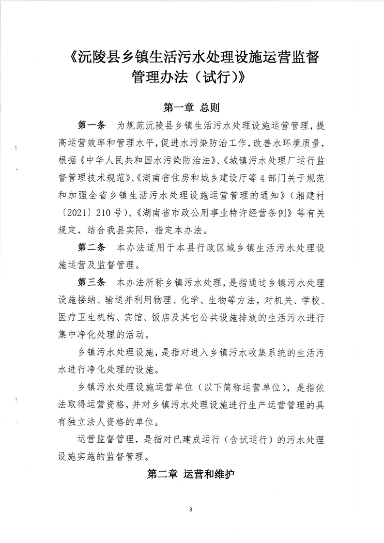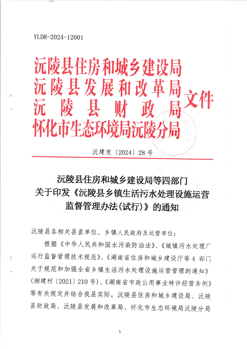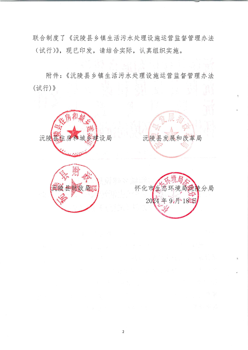 沅陵县住房和城乡建设局等四部门关于印发《沅陵县乡镇生活污水处理设施运营监督管理办法(试行)》的通知