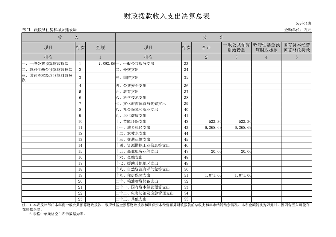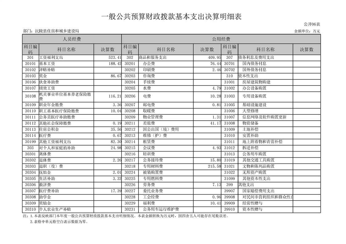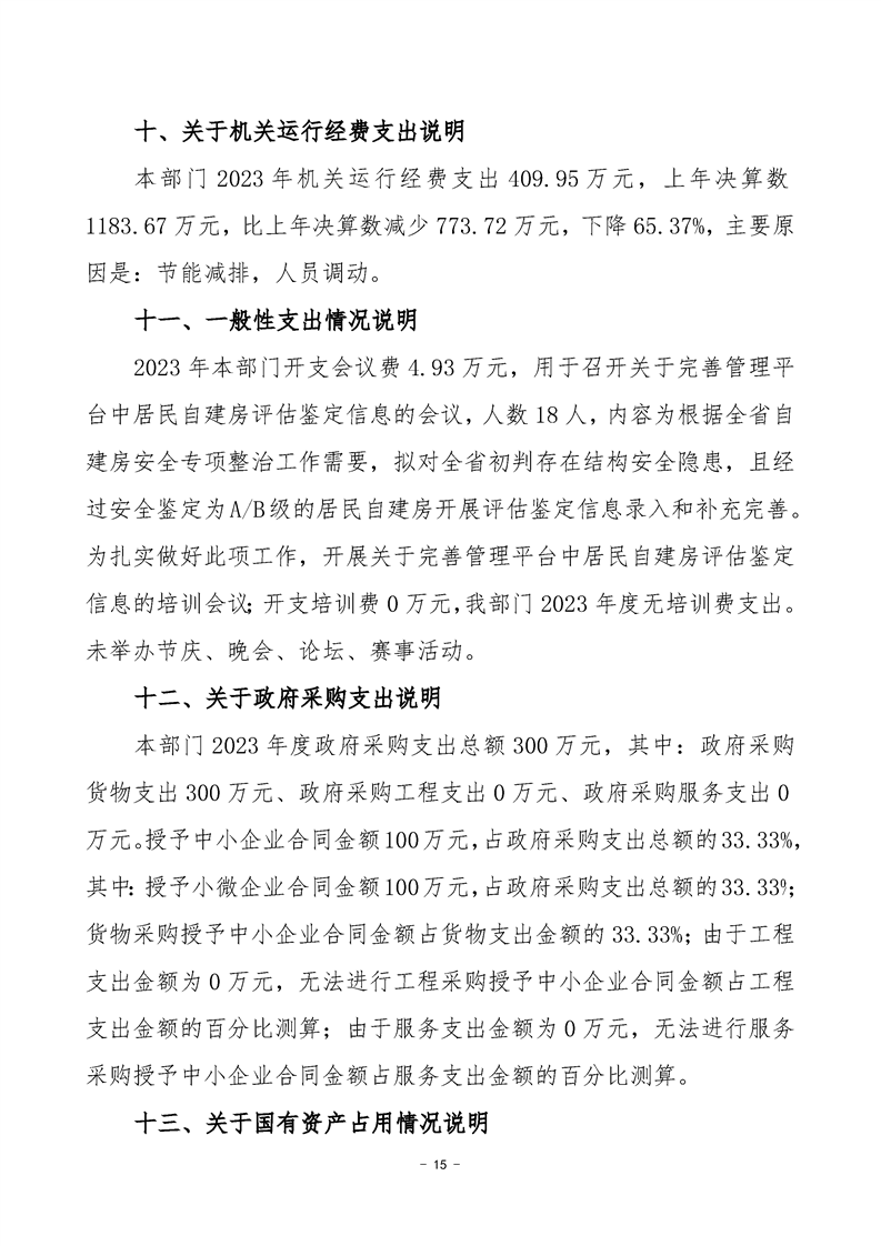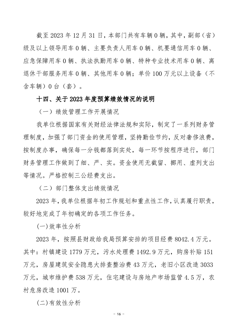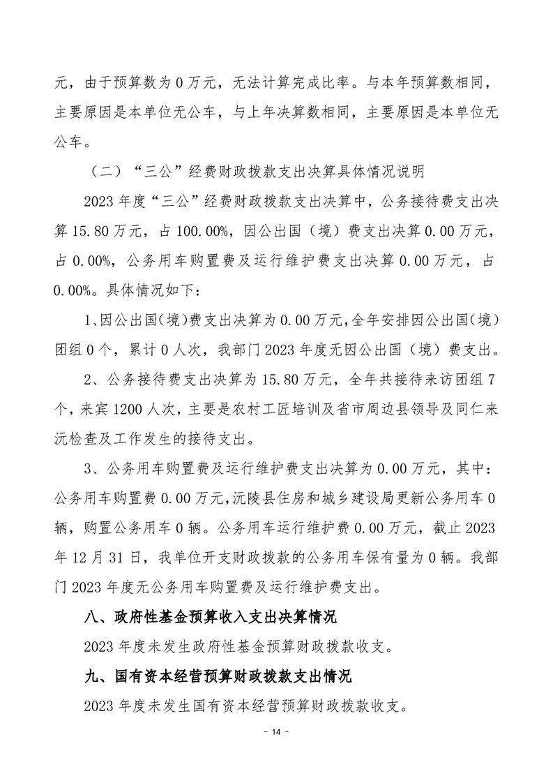 2023年度沅陵县住房和城乡建设局部门决算