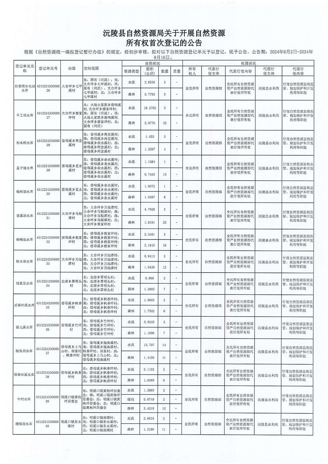 沅陵县自然资源局关于开展自然资源所有权首次登记的公告