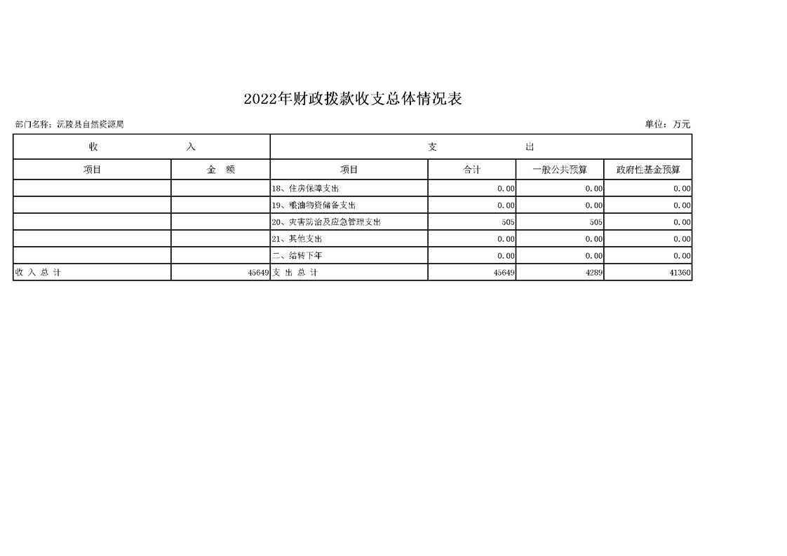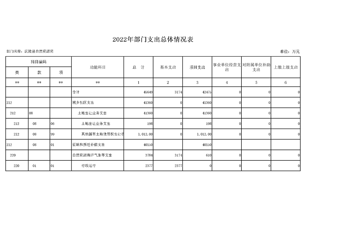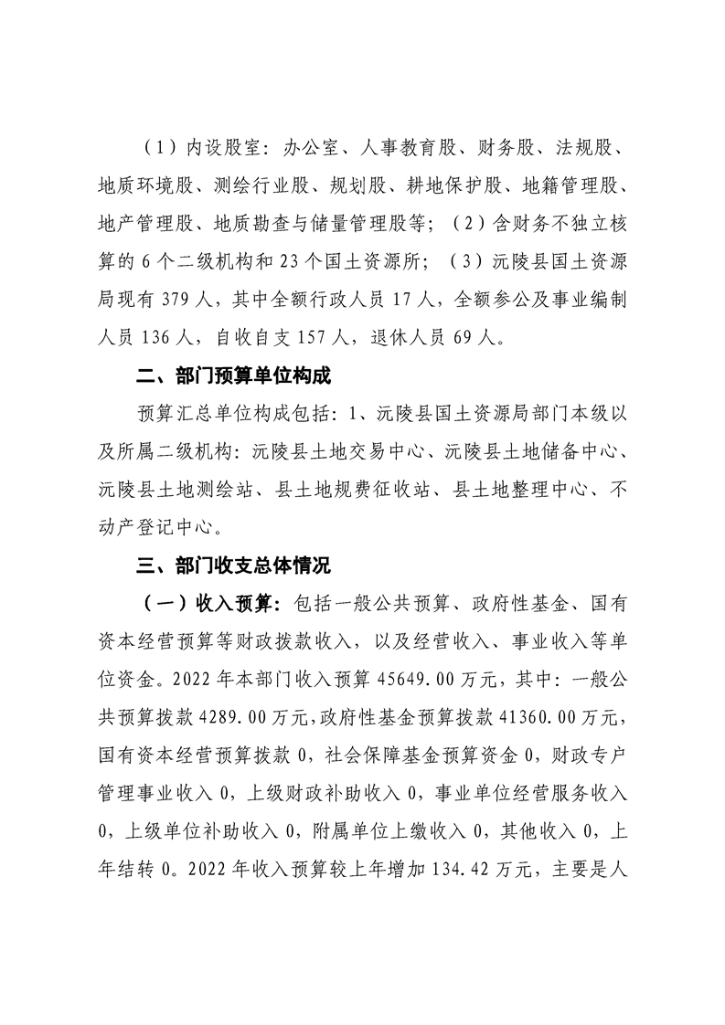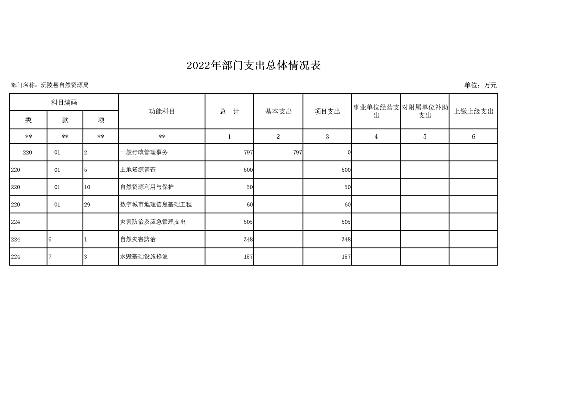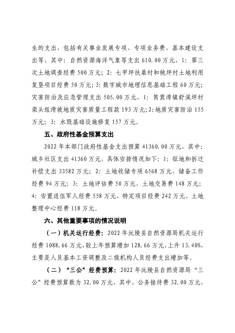 2022年沅陵县自然资源局预算公开