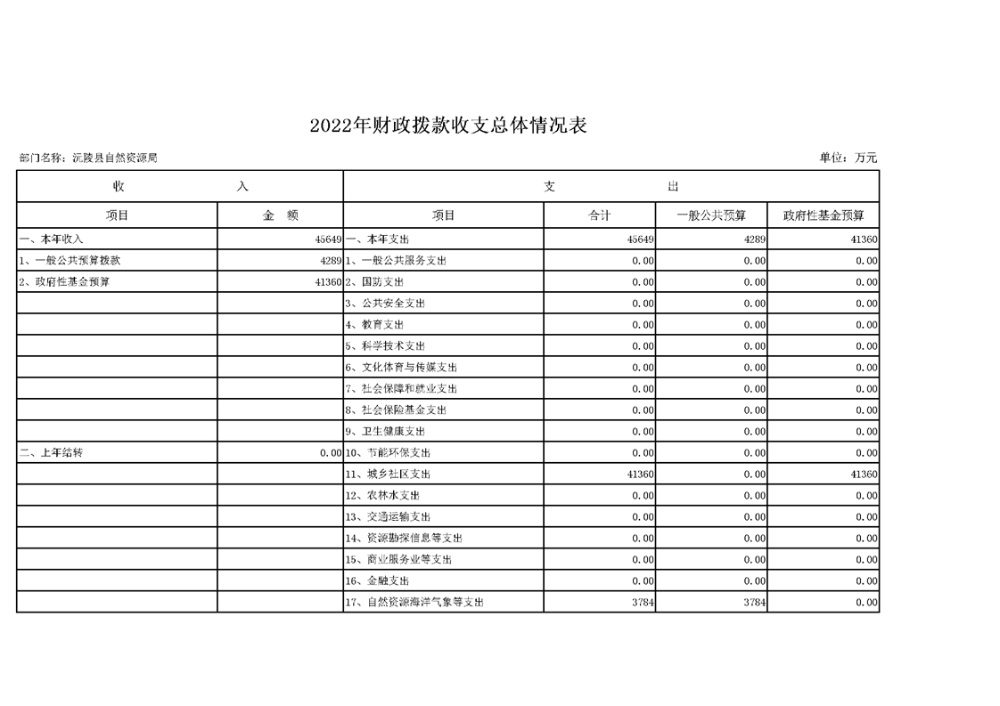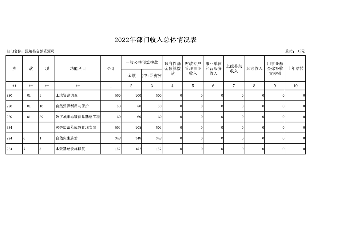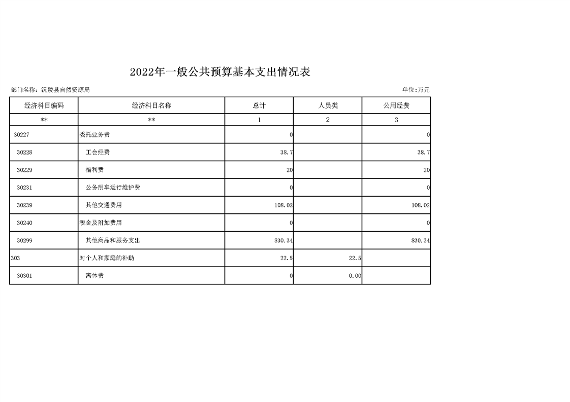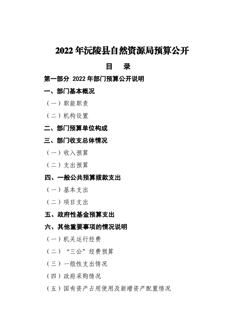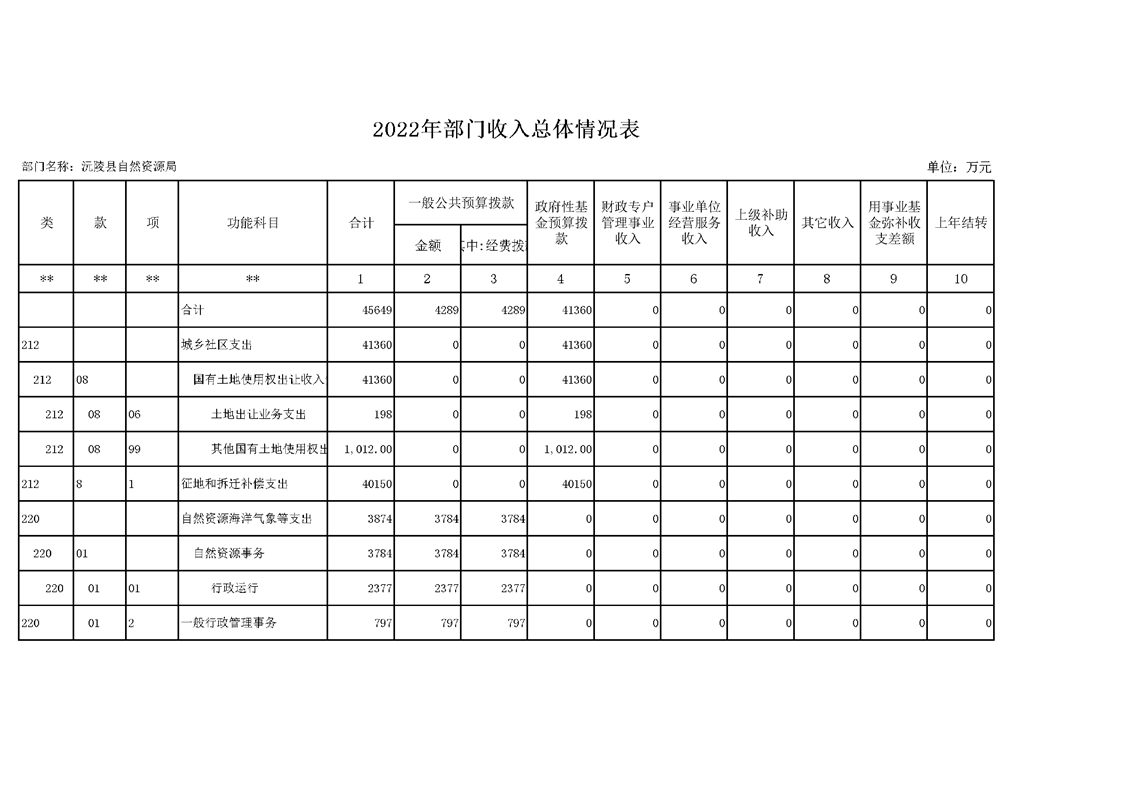 2022年沅陵县自然资源局预算公开