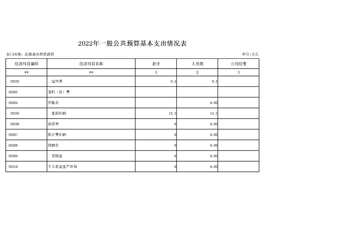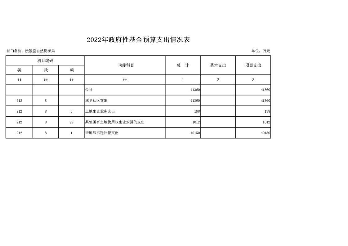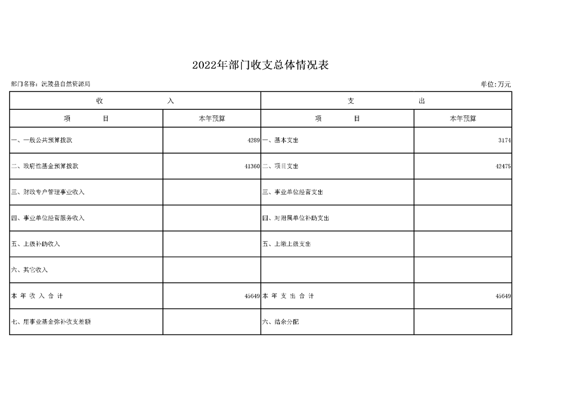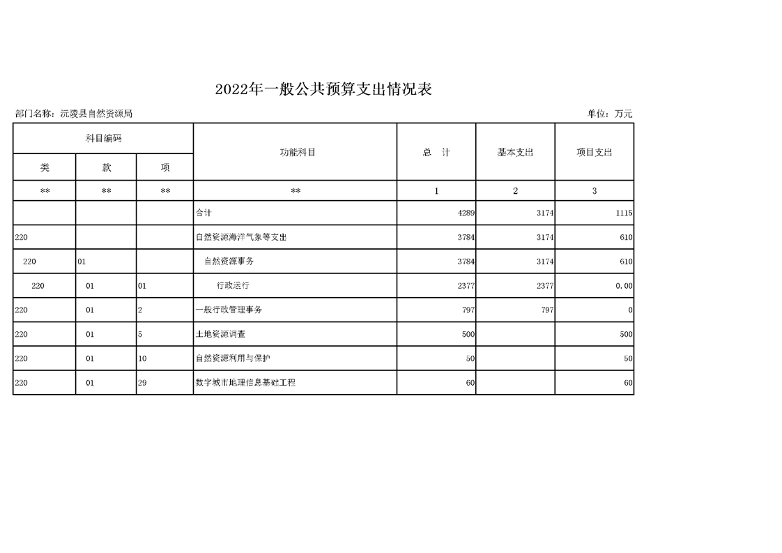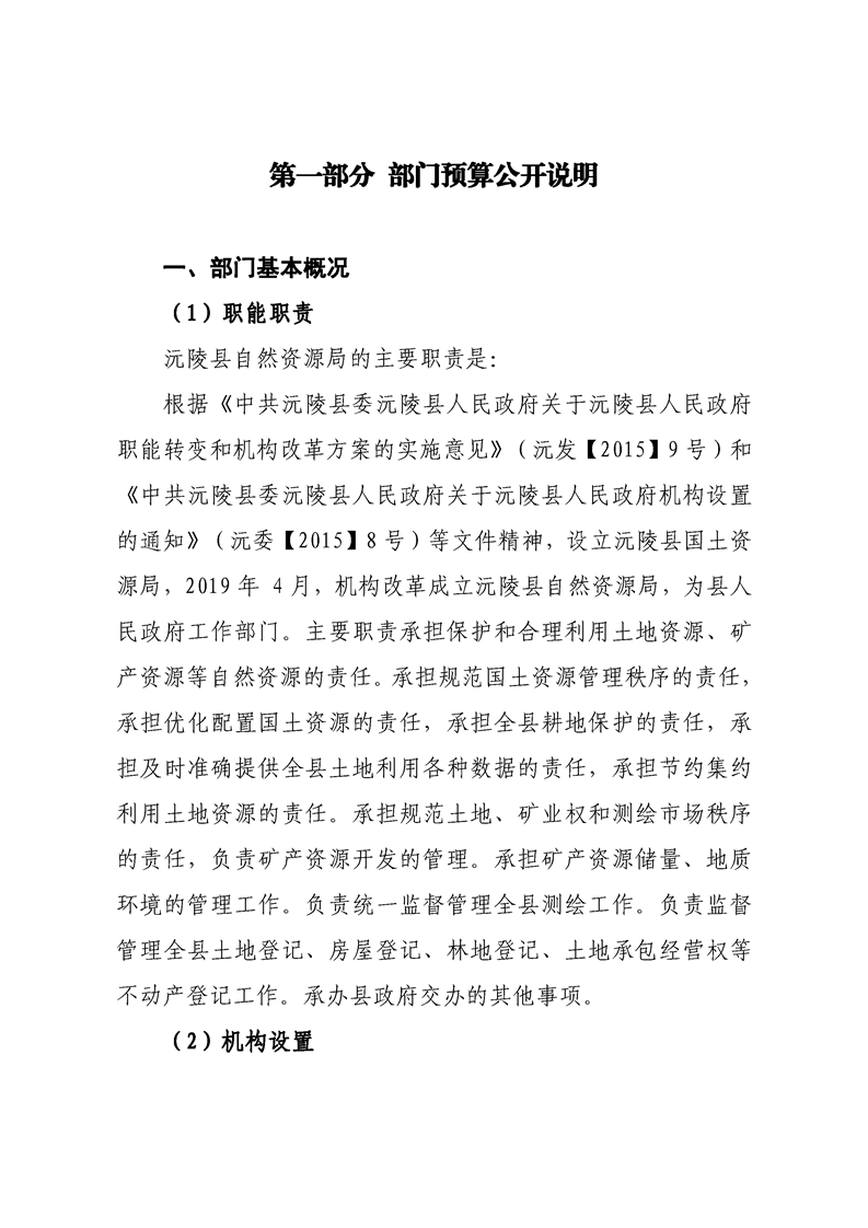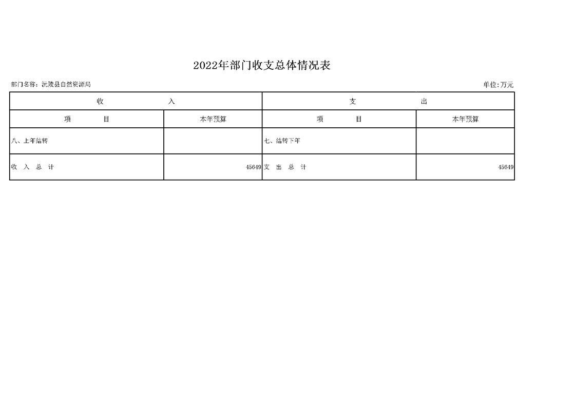 2022年沅陵县自然资源局预算公开
