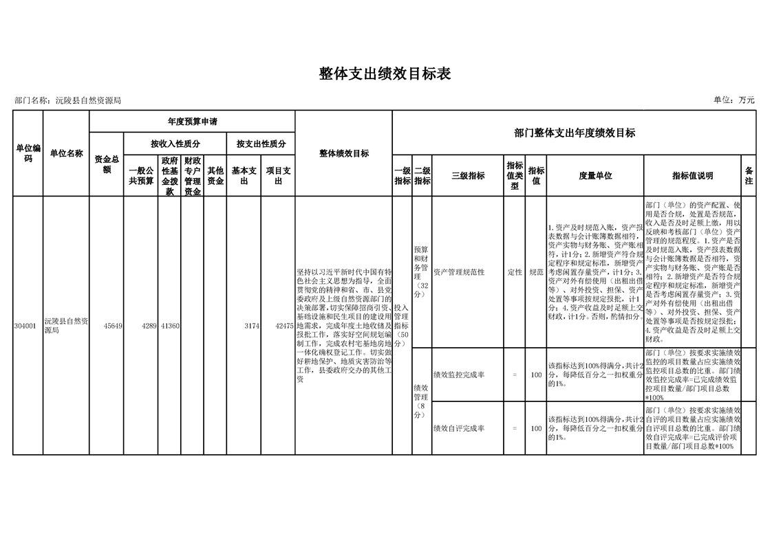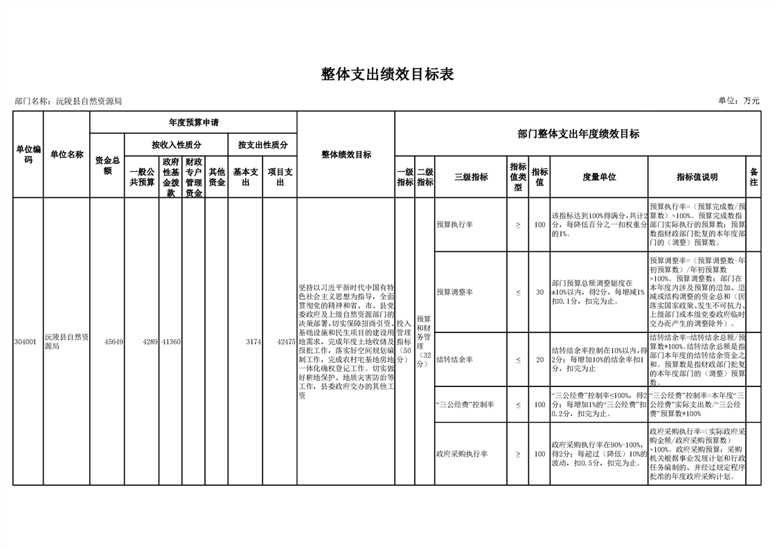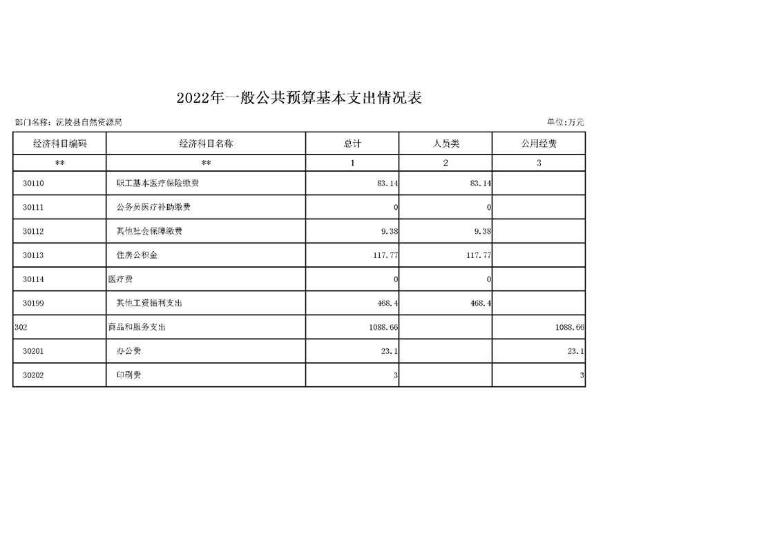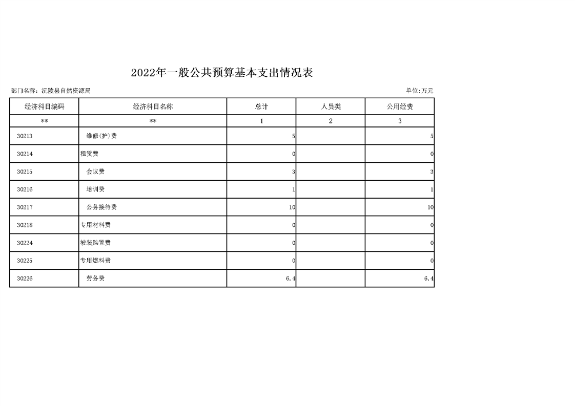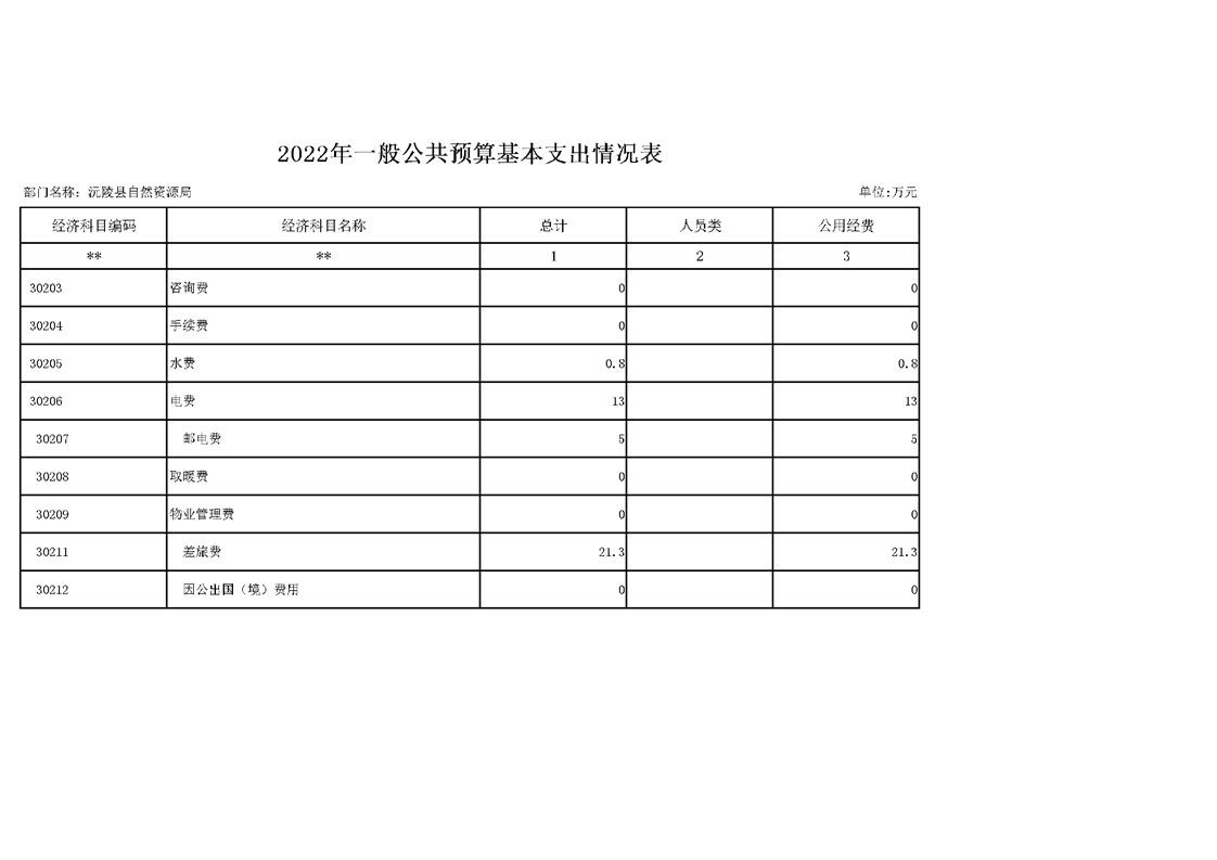2022年沅陵县自然资源局预算公开